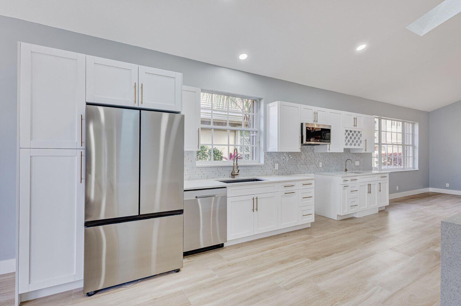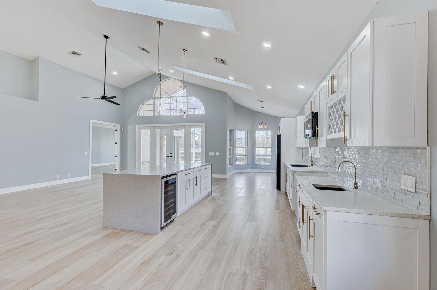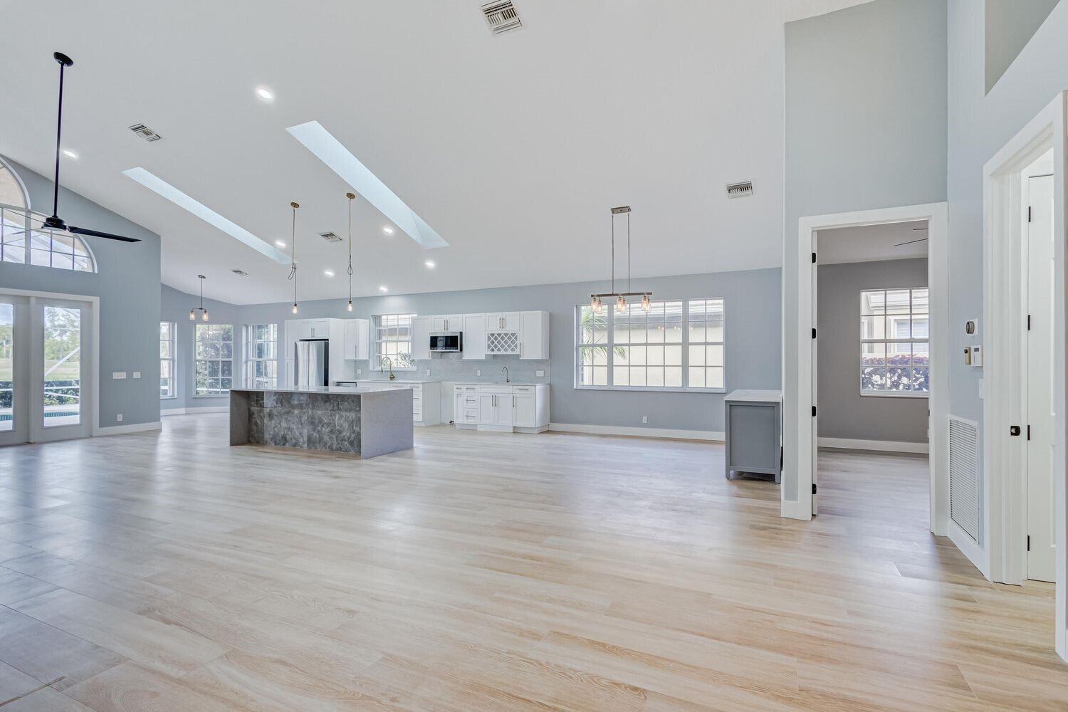WELCOME to an expansive single-level newly renovated modern home w/ 4 bedrooms, 3 en-suite bathrooms (+ half bath). Includes screened, heated pool & spa located directly on the golf course w/ amazing sweeping lake & course views, + privacy landscaping. Everything is brand new including an amazing open kitchen w/ soaring ceiling, attached 2-car garage, stainless steel appliances, gas stove, wet bar, wine refrigerator & rack, ''spa-like'' master bathroom w/ powered lit mirrors, soaking tub, rainfall shower, heated towel rack & private water closet. Located in a private enclave inside of Ironhorse CC, a 24-hour guard gated community, offering endless nature, golf and lakes. Access to private PGA National amenities available and the ability to pay as you play. Open to furnishing for season.