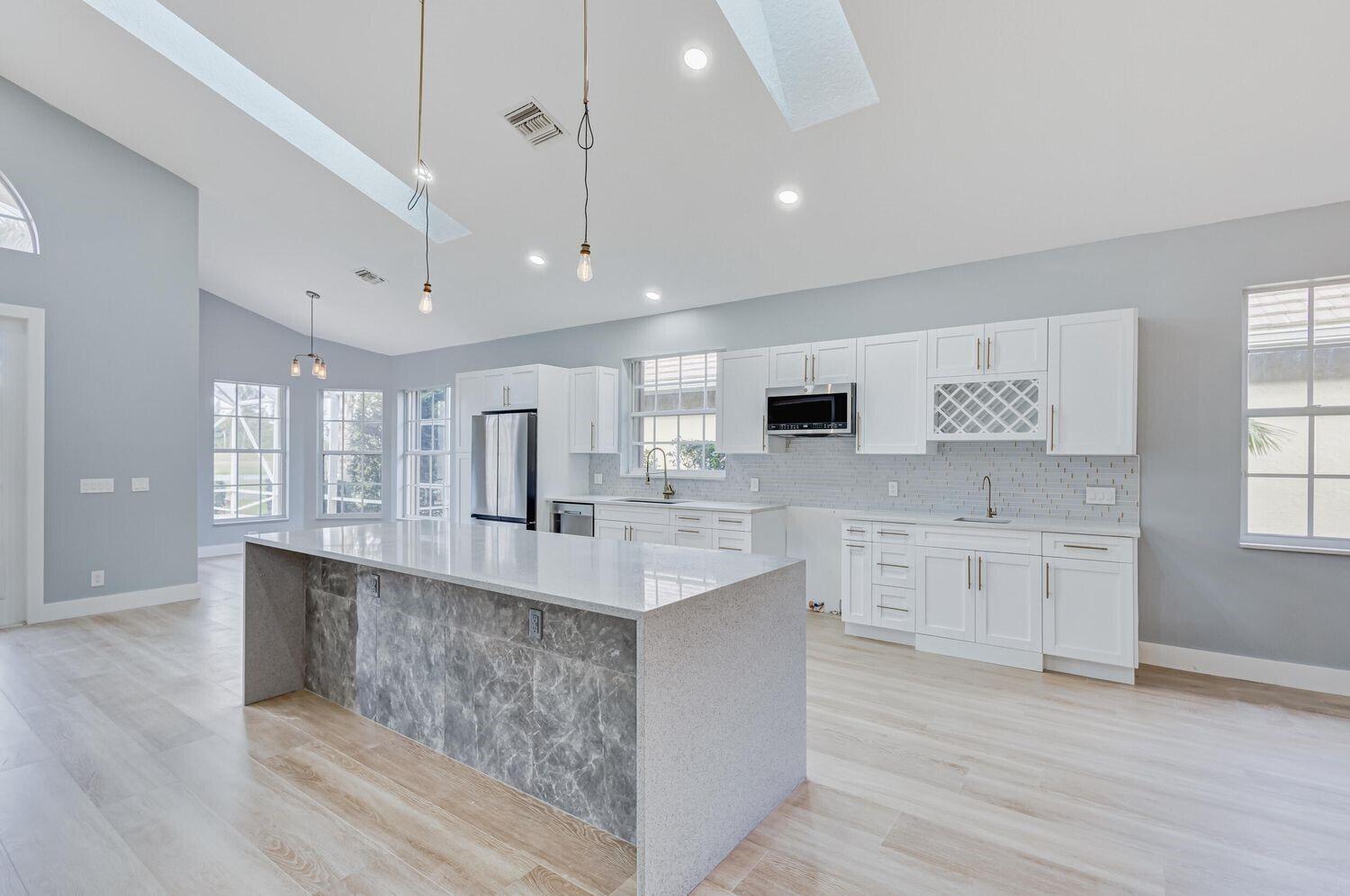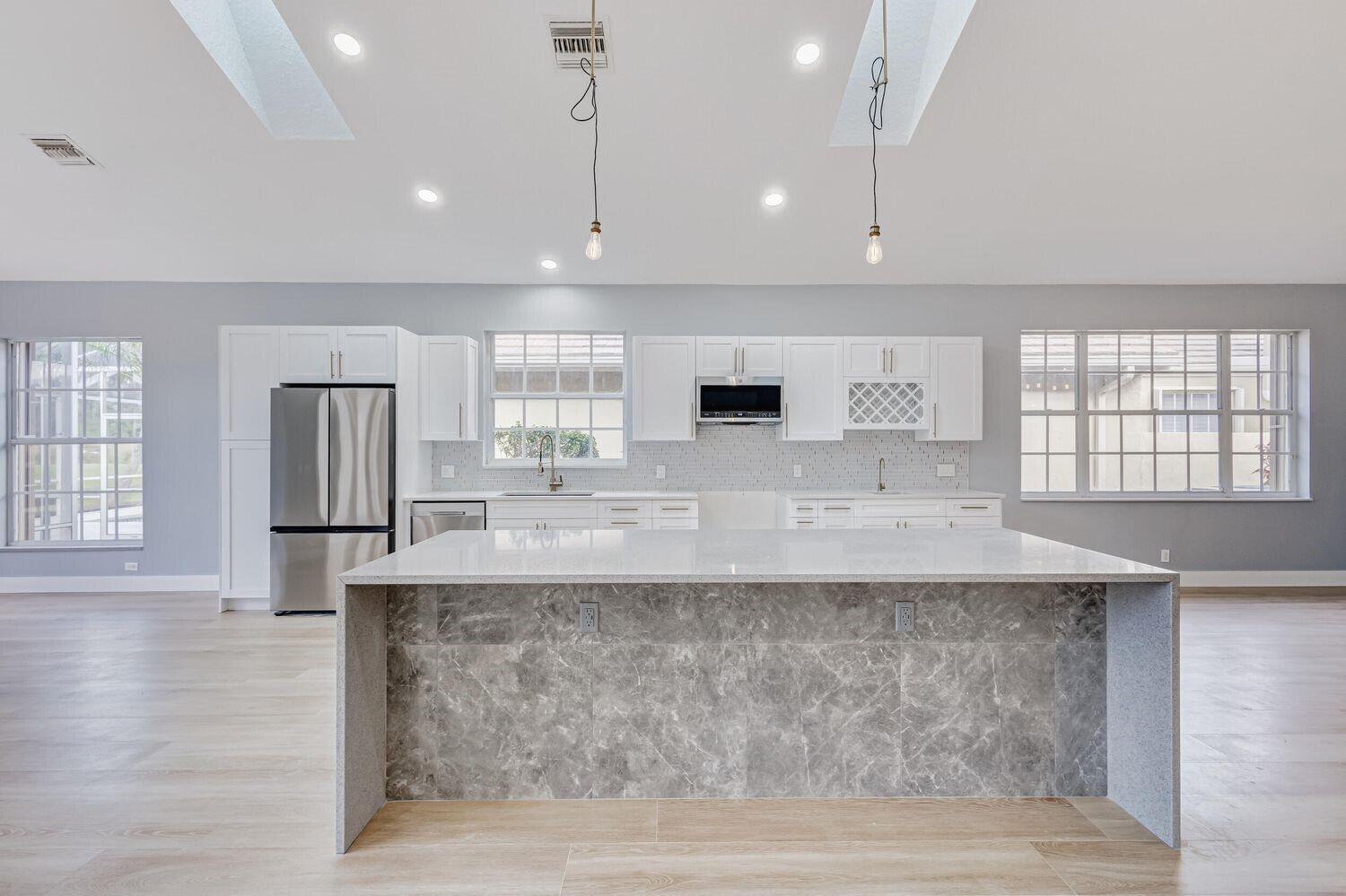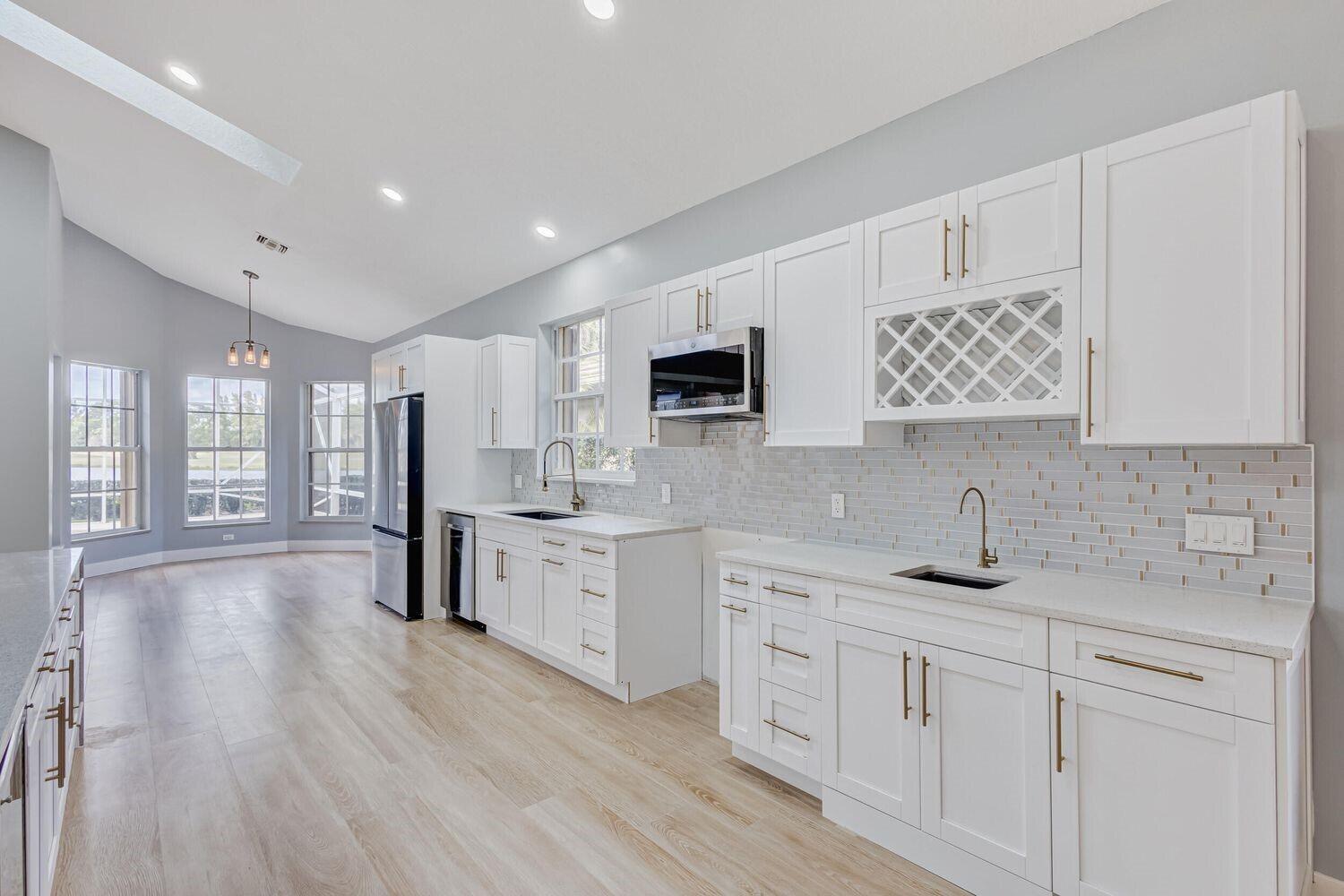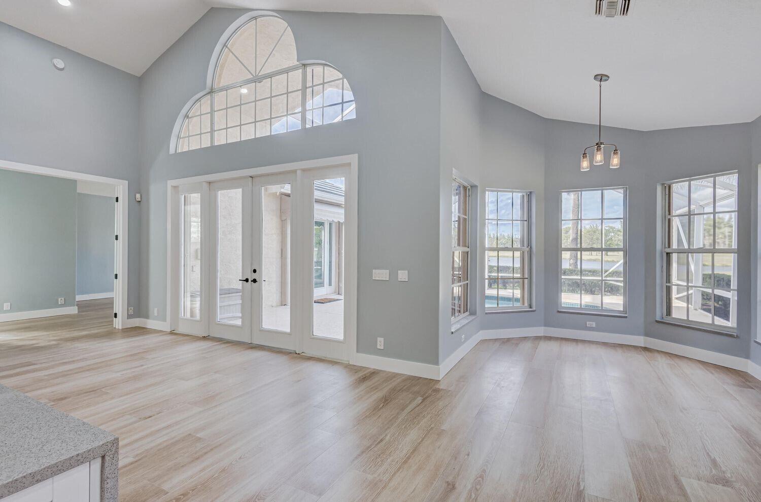 WELCOME to an expansive single-level newly renovated modern home w/ 4 bedrooms, 3 en-suite bathrooms (+ half bath). Includes screened, heated pool & spa located directly on the golf course w/ amazing sweeping lake & course views, + privacy landscaping. Everything is brand new including an amazing open kitchen w/ soaring ceiling, attached 2-car garage, stainless steel appliances, gas stove, wet bar, wine refrigerator & rack, ''spa-like'' master bathroom w/ powered lit mirrors, soaking tub, rainfall shower, heated towel rack & private water closet. Located in a private enclave inside of Ironhorse CC, a 24-hour guard gated community, offering endless nature, golf and lakes. Access to private PGA National amenities available and the ability to pay as you play. Open to furnishing for season.