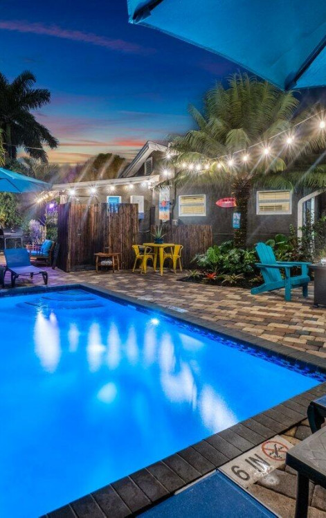 Available 1/04/2026 - 2/07/2026, Escape to this Private Heated-Poolside Retreat, a luxurious haven in the heart of Downtown West Palm Beach. This captivating mid-century modern paradise offers 2 bedrooms, 2 bathrooms, and a spacious living room with King-Size pull out, accommodating up to 6 guests. Every corner is adorned with carefully selected, brand-new furnishings for your comfort & style. Step into a world of Old Florida nostalgia and carefree charm with vibrant mid-century modern decor. The living space is designed for ultimate entertainment. Outside, the lush landscape surrounds a private oasis, complete with a heated pool, invigorating outdoor bamboo shower, fire pit, and BBQ area.