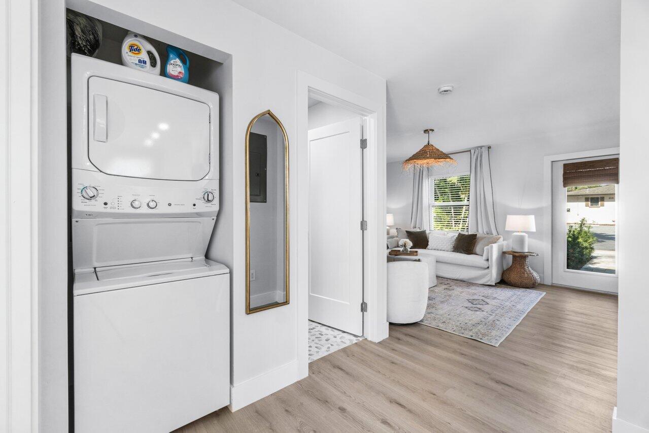 Fully Renovated single family home located 2 blocks off the intracoastal in the historic neighborhood of Northwood Harbor that is experiencing significant development growth. Main house features 2 bedrooms, 1 bath, with central a/c and utility closet. Detached studio apartment with 1 bath, full kitchen and mini split. Both units are fully permitted with brand new plumbing, electrical, stucco; impact windows and doors. Featuring recessed lighting, quartz countertops, stainless steel appliances, professionally landscaped grounds with new sod and underground sprinkler system. Fenced backyard with space for a pool. Some of the planned and approved developments just minutes away include: Alba, Olara, The Ritz Carlton. Beautiful rental property with flexible terms.