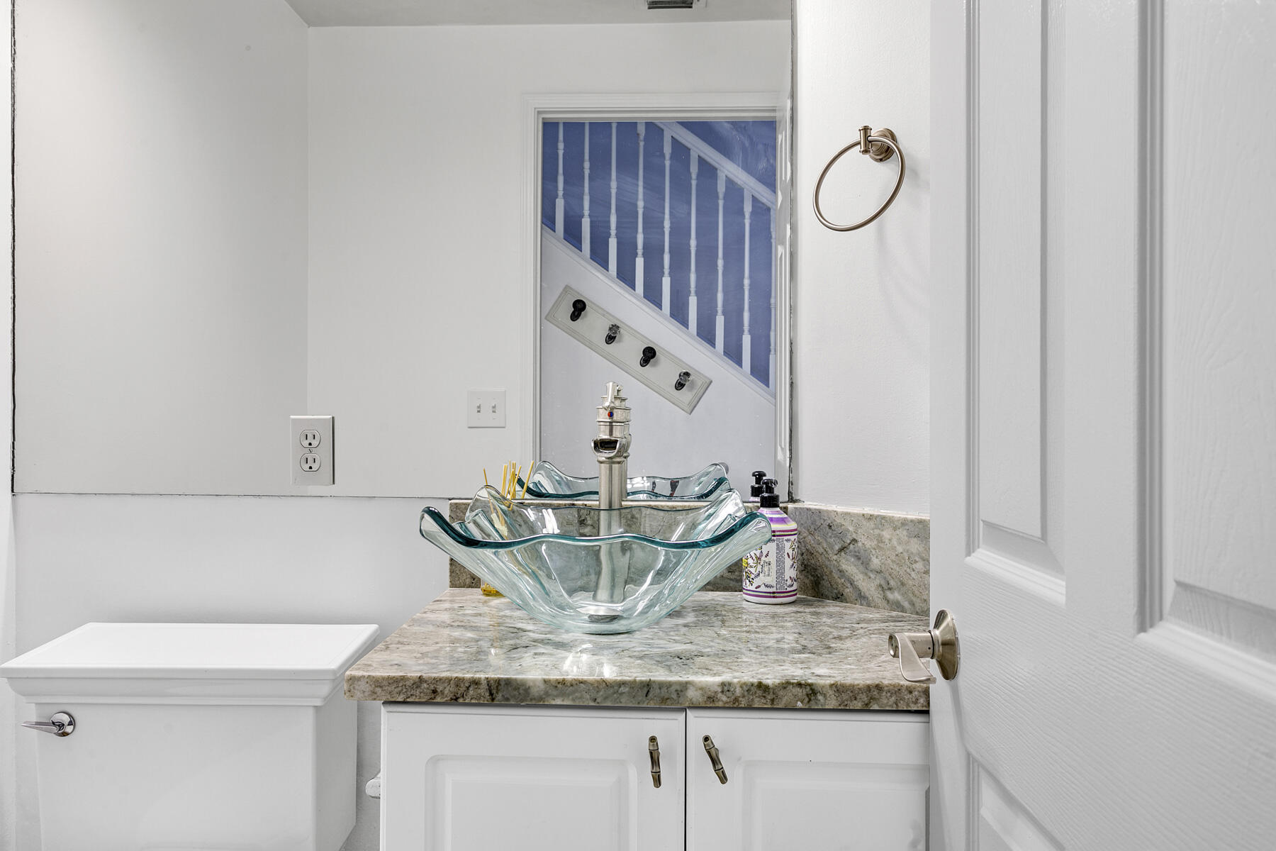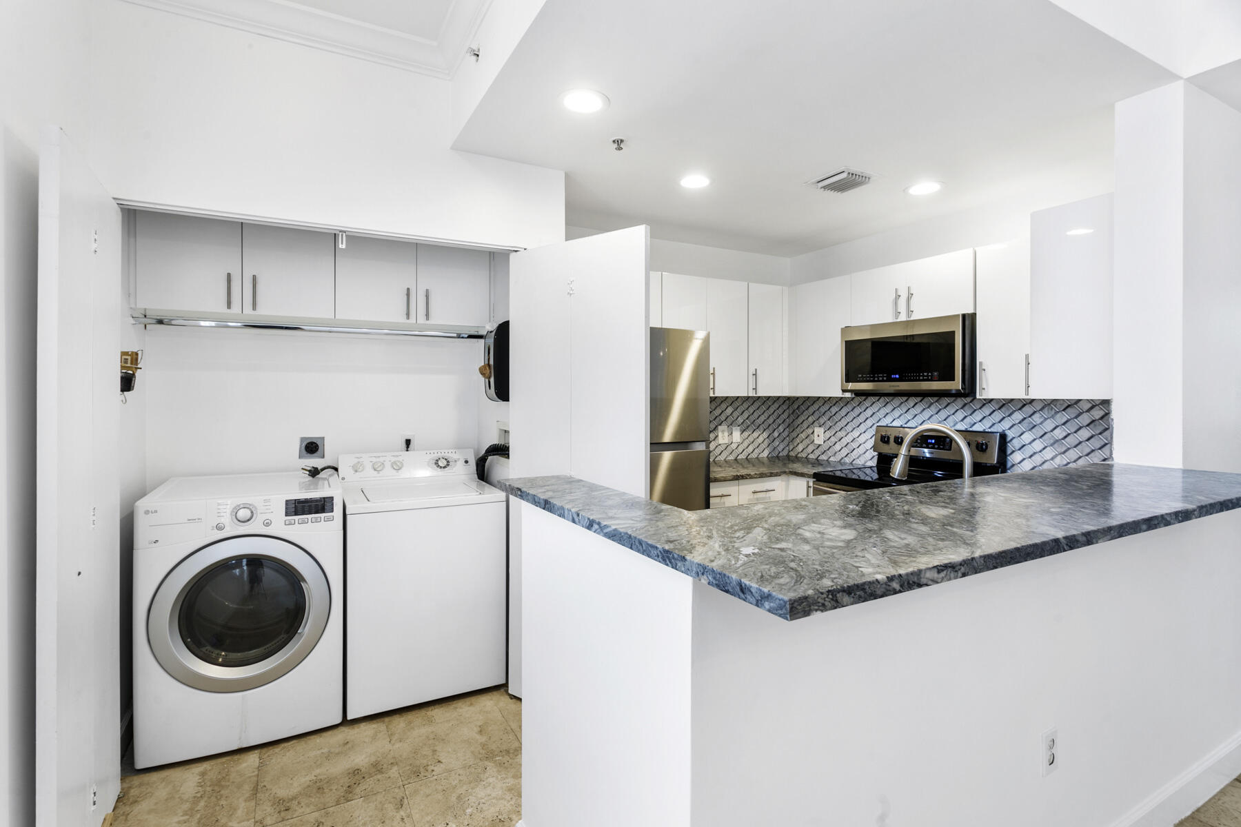 Wonderful CitiPlace location! Walk out your door and be in the middle of all that West Palm Beach has to offer - including great restaurants, many shops, gyms, a Publix, office towers and more! This 3 story townhome is freshly painted and has gleaming marble floors throughout. !st floor has an office/den/bedroom with a powder room and direct access to your own private 2 car, gated garage. 2nd floor - large living room, dining room and an open kitchen with laundry.3rd floor is the primary suite with a large bedroom with built-in shelving, walk-in closet and a full bath, and there is a second en-suite bedroom with a full bath. And the community has a gated, community pool too!