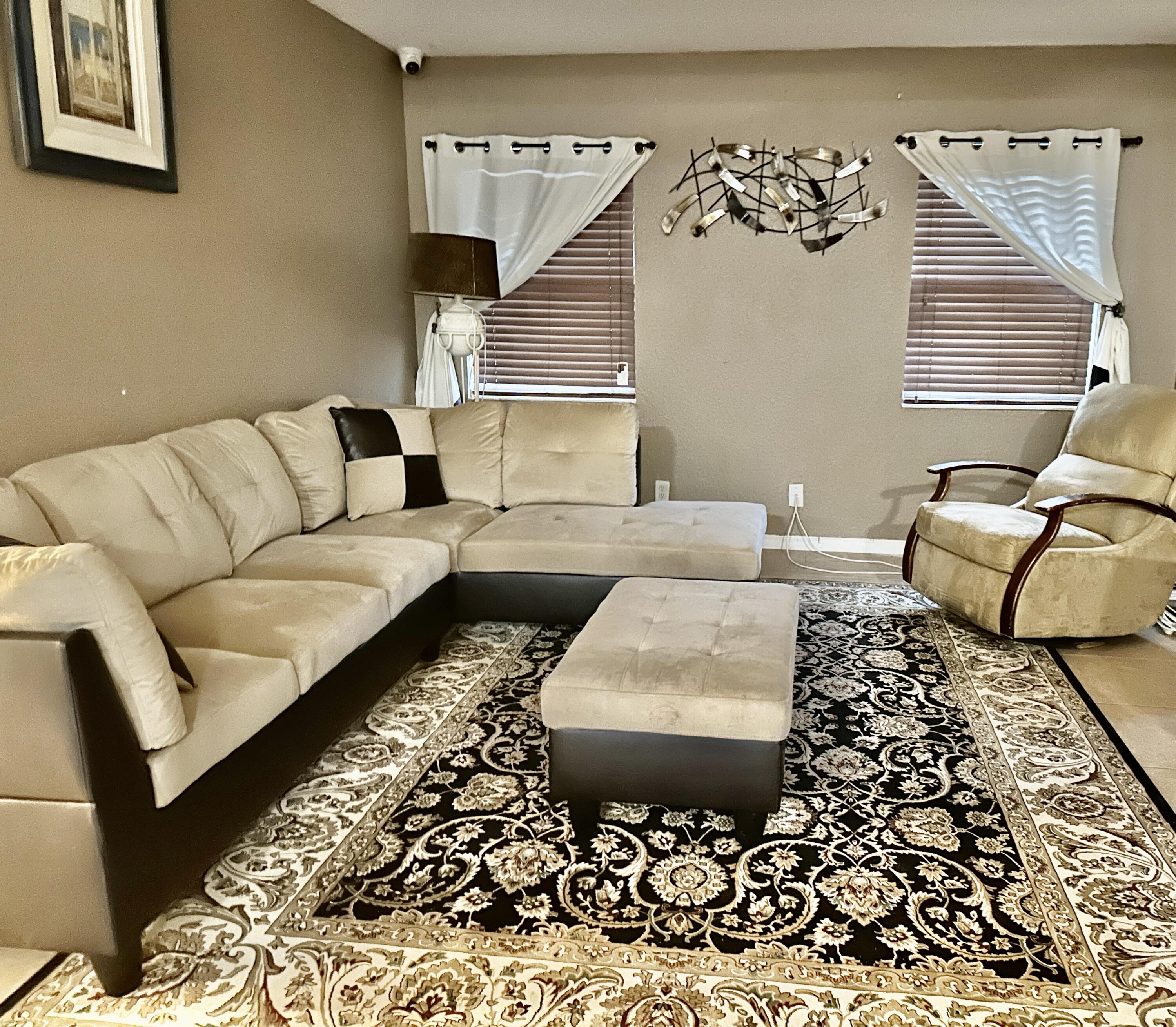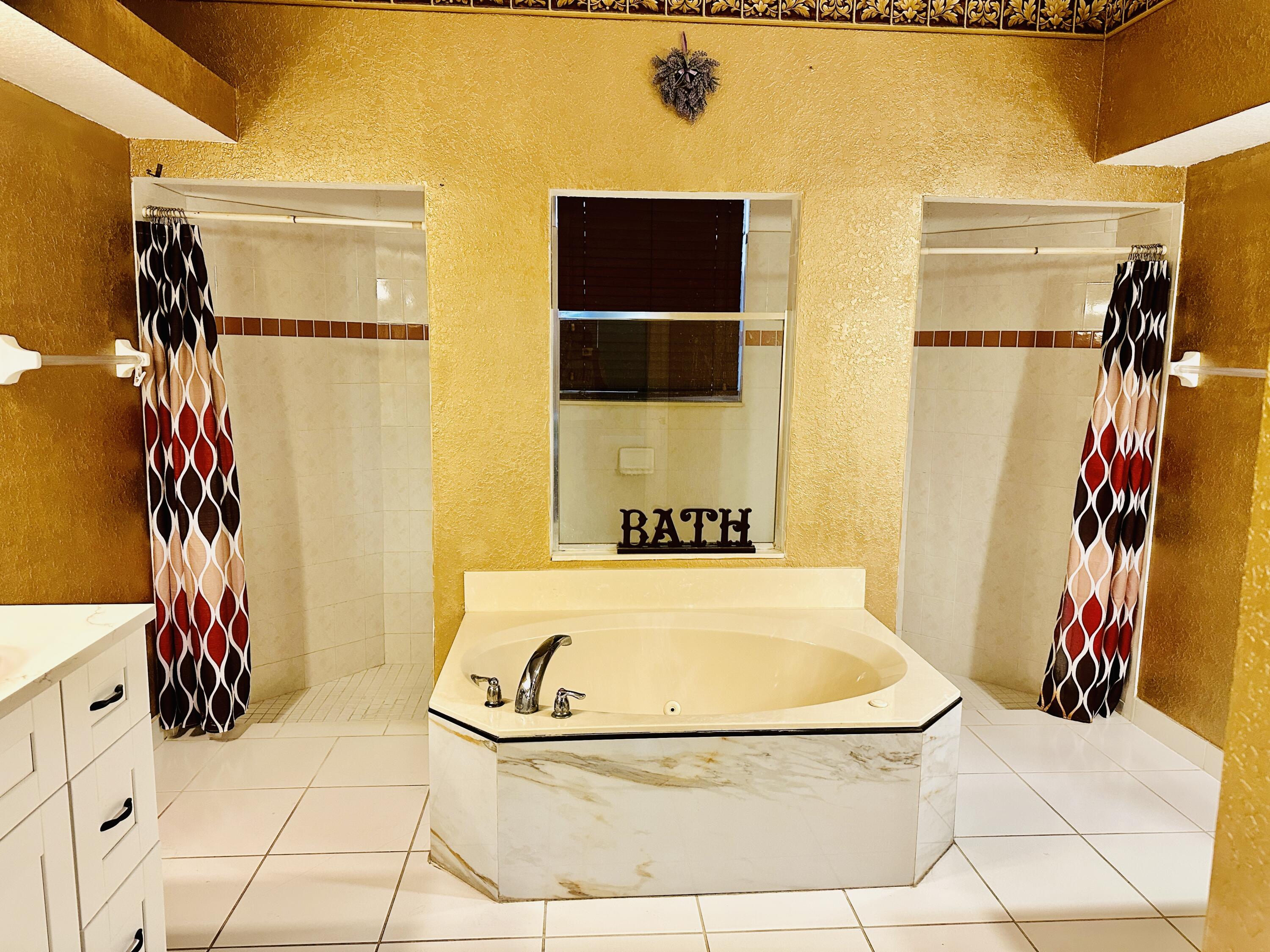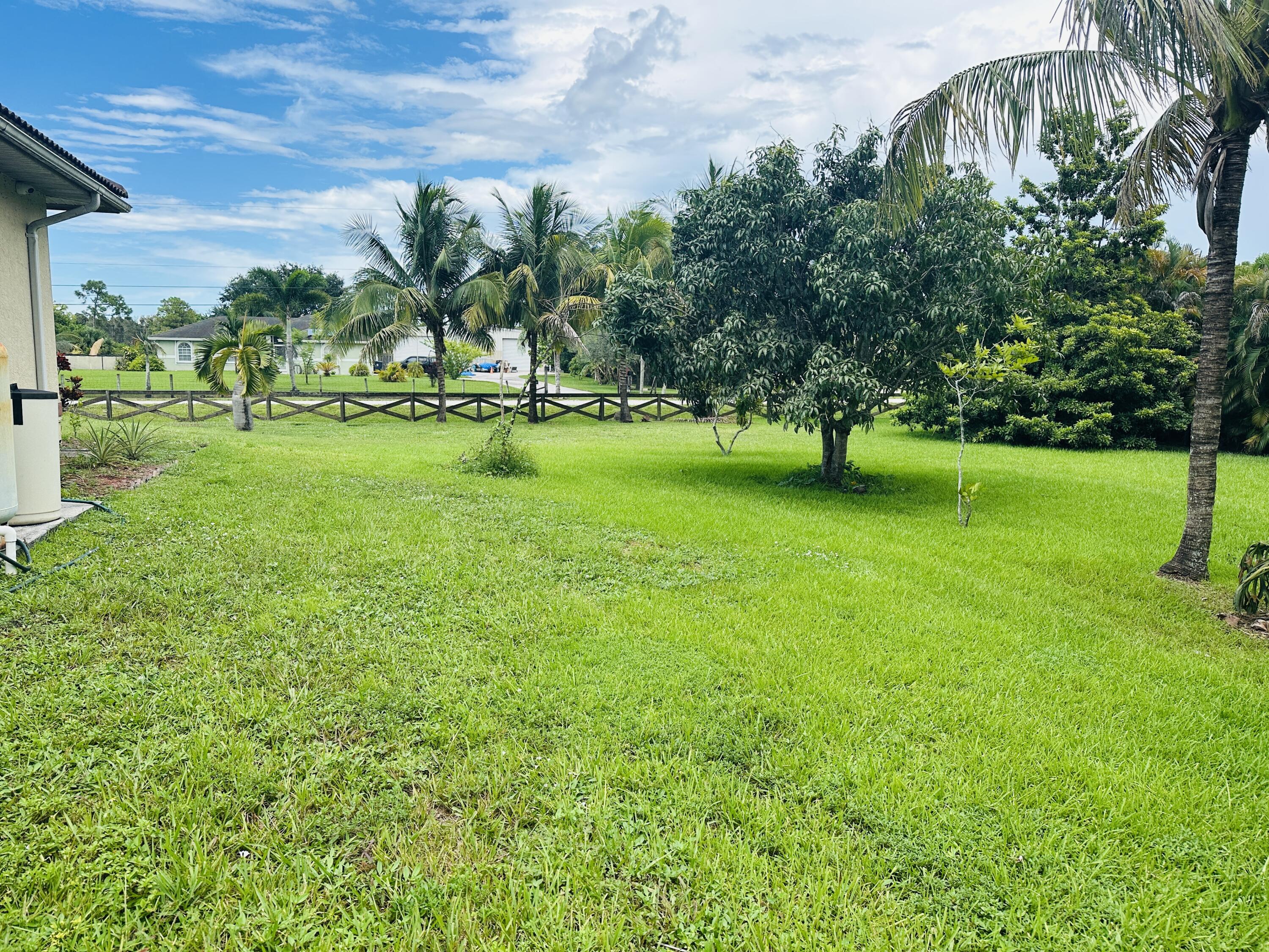 FULLY FURNISHED, SHORT TERM RENTAL -Spacious 5-bedroom, 3-bath pool home on 1.29 acres in The Acreage! This home features a split floor plan, carefully planned living areas, and an updated kitchen. The private primary suite offers a double shower and jacuzzi tub. Extended laundry room and bedrooms!Enjoy the screened-in pool and extended patio, perfect for relaxing or entertaining. NO HOA!!! Bring your Pets, Trucks, Boats, RV!Conveniently located near the new Avenir Town Center, shopping, dining, parks, and top-rated schools. Water and lawn care are included for stress-free living.