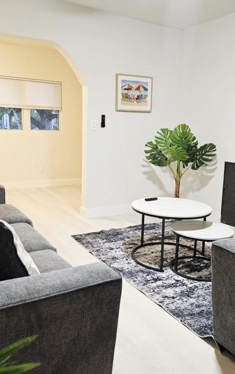 Newly remodeled home available for short term rental. Fully furnished, large fenced yard and offstreet parking. Prime east location close to Beaches, Downtown WPB and Worth Ave. Pets OK w deposit.