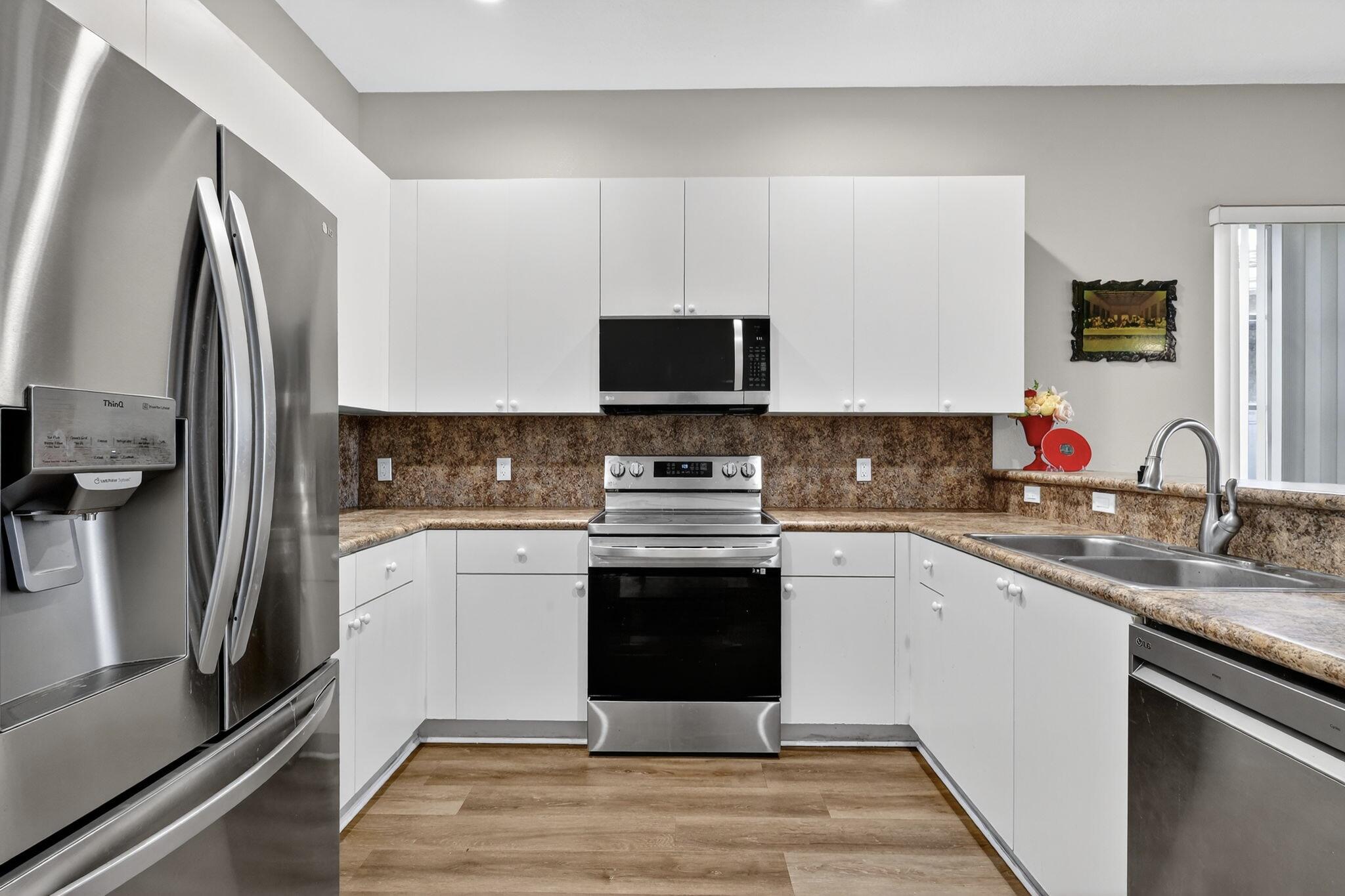 Three bedroom and two bathroom home on wide lakefront. Your private sanctuary awaits you. Tranquil lake views surround you as you enter the property and throughout the home. Open floor plan. This home features elegant vinyl wood flooring both scratch and water-resistant. Andros Isle is a gated neighborhood with luxurious amenities. The community has an upscale clubhouse with fitness center, recreation room, two pools, jacuzzi, pickle ball, tennis, basketball, bike trails, security and on-site property management.