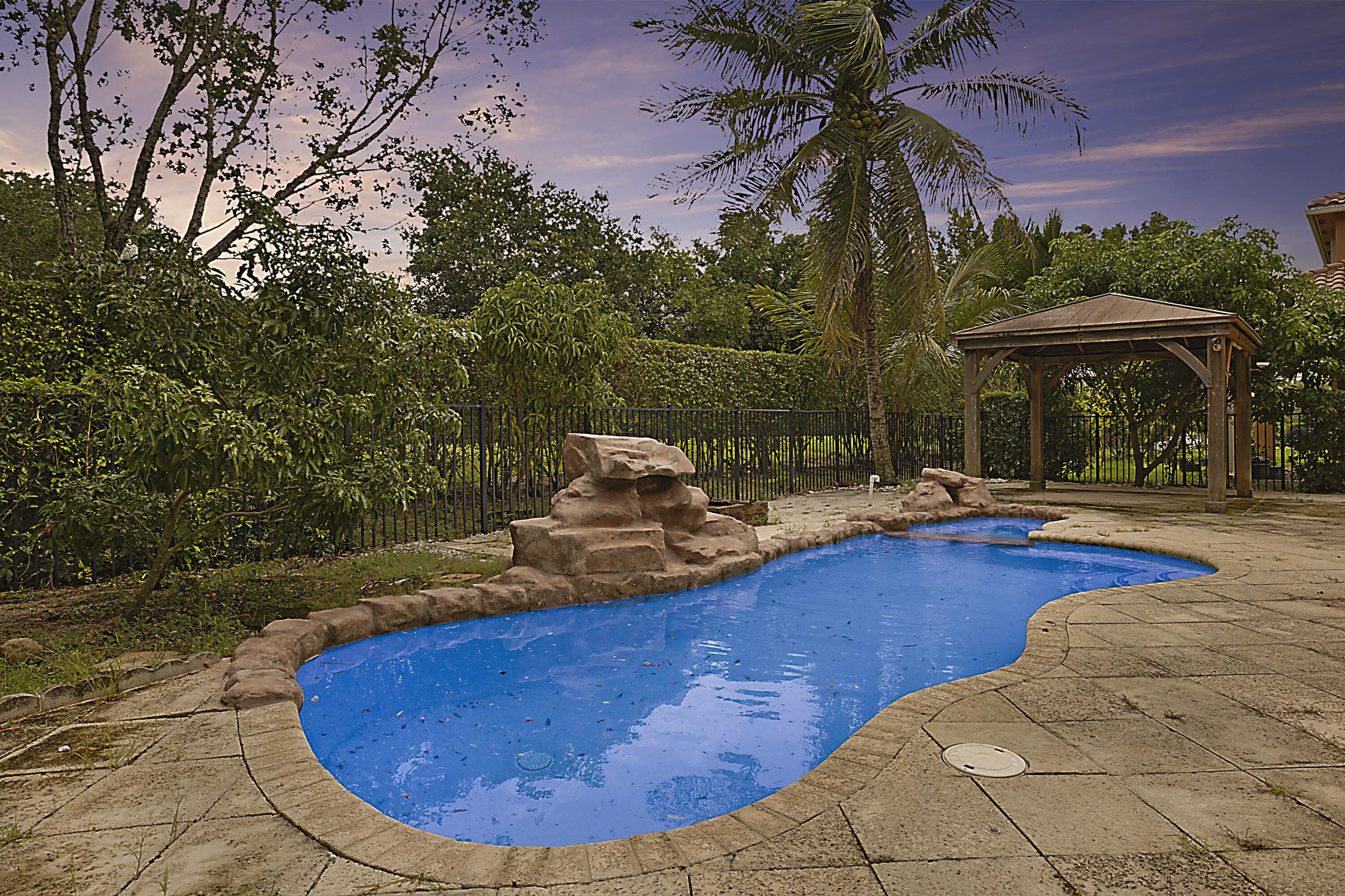 BEST VALUE IN LUXURY LIVING -- YOUR DREAM HOME AWAITS! Welcome to an exceptional luxury residence thoughtfully upgraded for elegant and comfortable living, where refined design meets everyday functionality. This home features a chef-inspired gourmet kitchen with granite countertops, sleek stainless steel appliances, and ample cabinetry--perfect for entertaining or daily enjoyment--while the primary suite offers a private retreat with a whirlpool Jacuzzi. Step outside to your own fully fenced tropical backyard oasis, highlighted by a sparkling heated pool--perfect for year-round enjoyment--along with a gazebo.Situated on a corner lot for added privacy and space, this home is located within a prestigious 24-hour guard-gated community offering top-tier amenities and peace of mind.