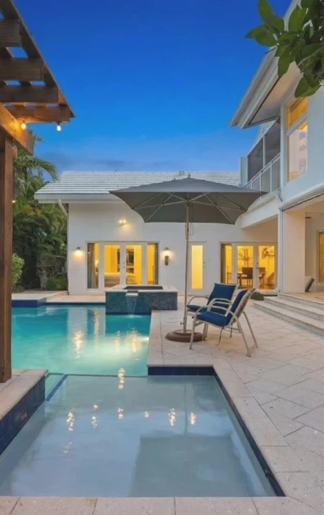 Located in the heart of Bay Harbor Islands, one of Miami’s most sought-after neighborhoods, this stunning mid-century modern residence offers 5 bedrooms, 5.5 bathrooms, and over 5,000 square feet of thoughtfully designed living space, set on a 10,000-square-foot lot. Rebuilt in 2009, the home seamlessly blends timeless architecture with modern luxury finishes. Featuring expansive ensuite bedrooms, a private office, den, and loft, the home is filled with natural light, soaring ceilings, rich wood and stone accents, and impact windows throughout. The chef’s kitchen is equipped with top-of-the-line Miele and Sub-Zero appliances, perfect for both everyday living and entertaining. The primary suite is a true retreat with multiple closets, a spa-inspired bathroom with a multi-jetted shower, and a private balcony. Outdoors, enjoy a resort-style backyard complete with a custom heated pool and jacuzzi, sun shelf, summer kitchen, pergola, pool bath, and lush tropical landscaping, including a butterfly garden.