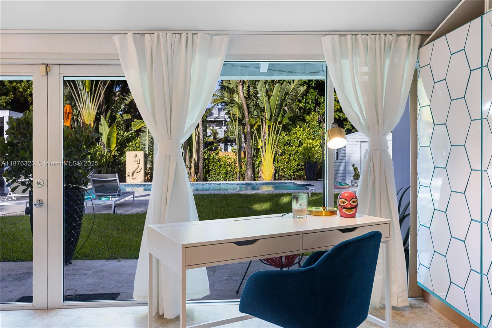 Relax in the private, fenced backyard with a sparkling pool, covered seating area, and lush landscaping. The large front yard offers ample parking. Enjoy close proximity to shops, restaurants, parks, and more—just 15 minutes from the Design District and Bal Harbour Shops.