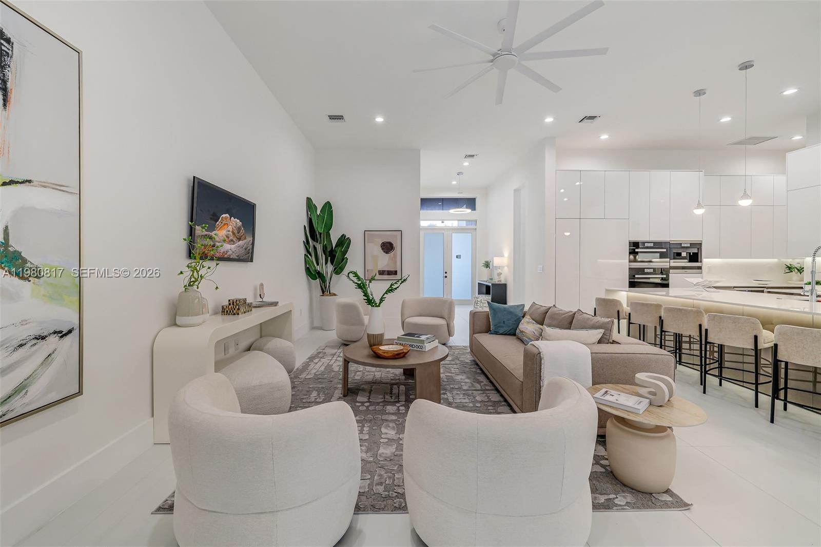 Brand new construction in Biscayne Park. One story home, high ceilings, impact windows and doors, private large backyard with covered patio, pool and spa. The interior features porcelain flooring in main areas and wood in bedrooms. Spacious living room, open kitchen featuring island, pantry, Miele appliances, quartz countertops. Four bedrooms, laundry room, walk-in closets, two car garage. Close to shopping plazas, Bal Harbour Shops, Miami Design District, Miami Country Day school. Easy access to major highways.
