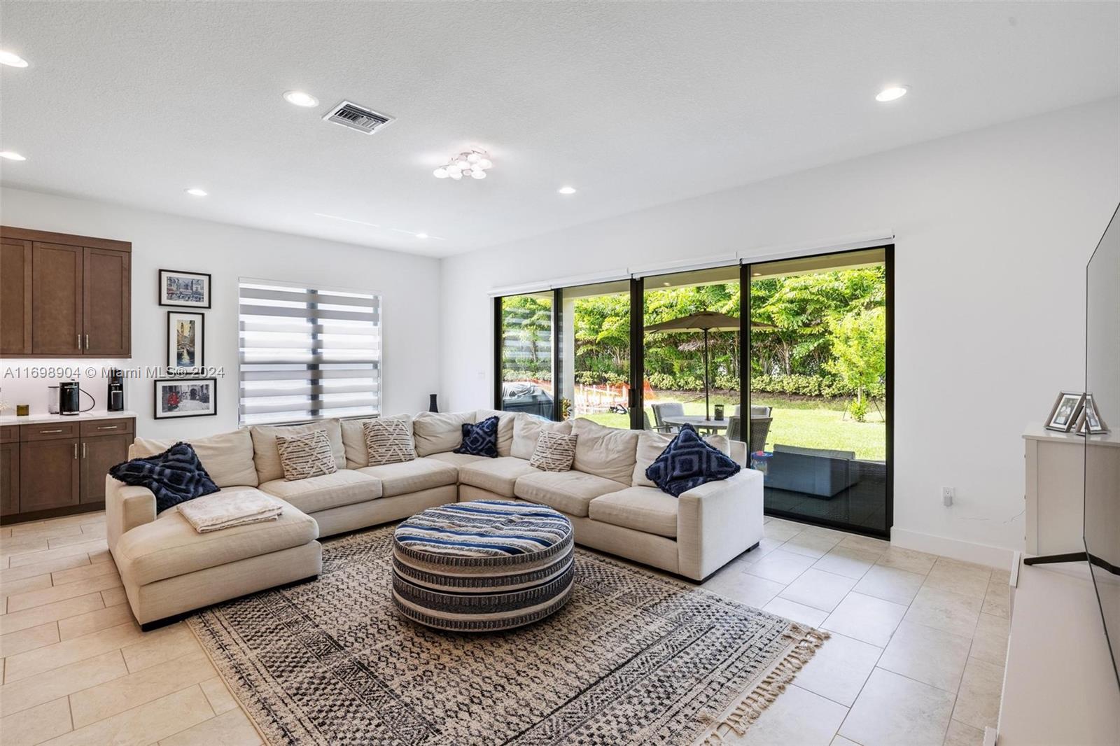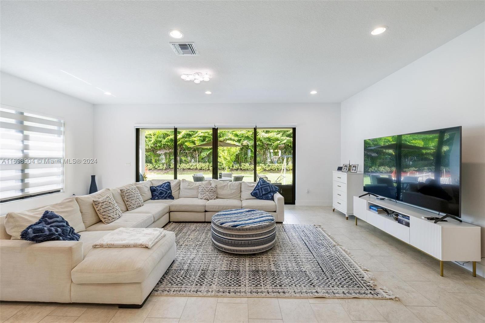 Natural light floods the expanded living and dining space, creating an inviting ambiance that extends effortlessly to private outdoor patio through impact glass doors. Delight in serene views of lush backyard with a perfect setting for al fresco dining or relaxation.