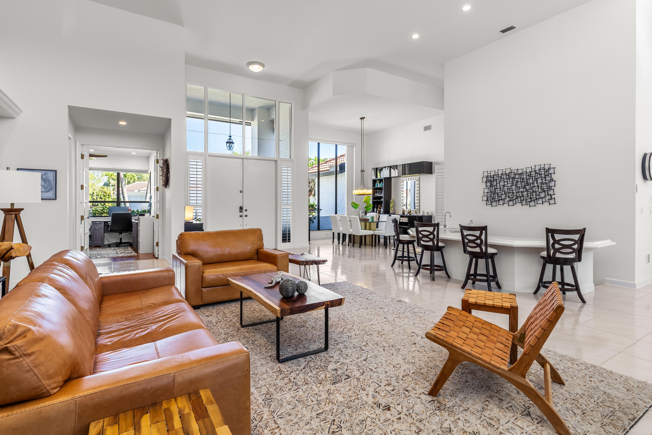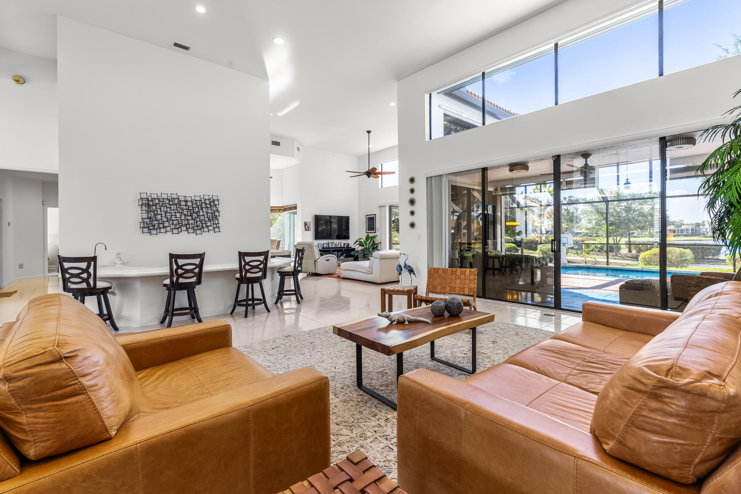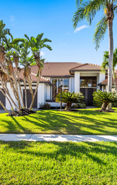 This beautifully updated residence blends timeless elegance with modern comfort. Featuring a stunning 2021 kitchen with quartz countertops, new appliances, and refined finishes. Bathrooms boast new vanities and sleek shower doors. Freshly painted inside and out with flat ceilings, luxury vinyl and 18'' ceramic tile flooring throughout. Electric blinds in the family and primary bedroom, walk-in closets, and a stylish new laundry room. Thoughtful upgrades include a central vacuum system, updated electrical outlets, new cabana bath door, epoxy garage floor, and included TVs and garage refrigerator. Enjoy a resurfaced (2024) heated chlorine pool, refreshed landscaping with lighting, new gutters (2025), lawn sprinklers (2019), and a 2008 roof with newer A/C units (2020 & 2022) and hot water he