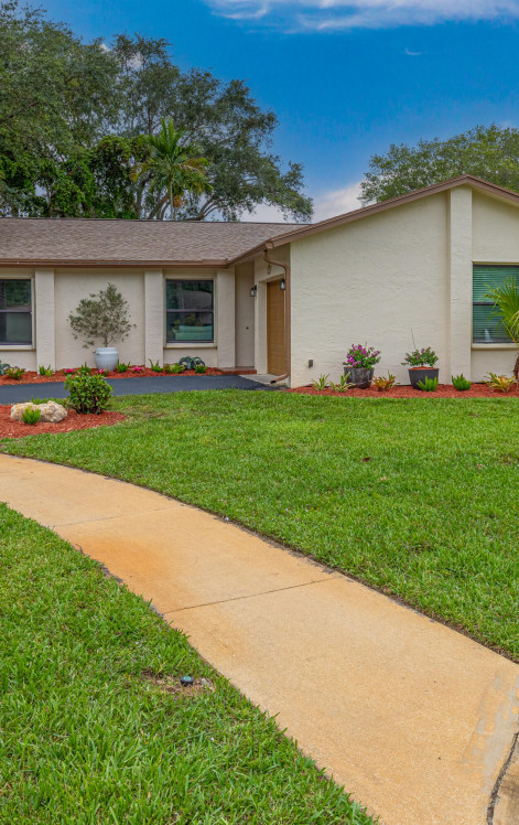 *+55 *. All is top of the line in this designer house! first the location, +8000 SFT lot on a very quiet cul de sac with well maintained houses around. Second the roof was installed in 2021, the windows were installed in 2012 with permit, including the sliders leading to a beautiful large patio. A new Trane AC system. The main living area has an open concept kitchen with Kitchen Aid appliances! A snack bar and a gorgeous white quartz counter top. Waterproof vinyl flooring looking like real wood. Recessed ceiling lights in all rooms, 3 good size bedrooms, 2 new bathrooms, one of the bedroom opens on the living area through a large barn door There is a covered patio with a peaceful nature view. A large one car garage with a washer and a dryer dedicated area completes this perfect home