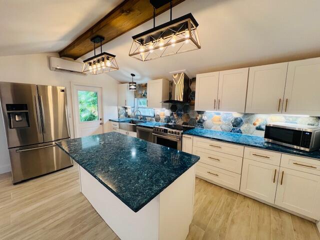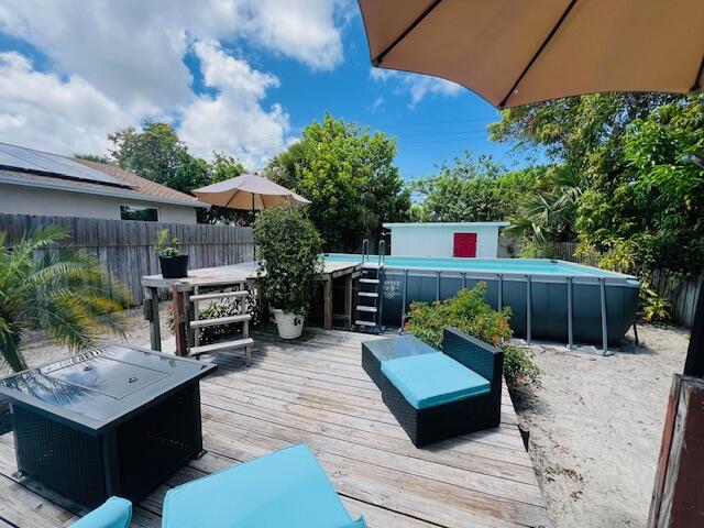 NO HOA AND ZONED R-2. Welcome to this East Boca 2-bedroom, 2-bath cottage with its beautifully wood plank tiled floors and vaulted ceilings featuring exposed beams. Enjoy year-round comfort with three mini-split AC systems. Both bathrooms are completely updated, and the open kitchen is a chef's dream with white shaker cabinets, stainless steel appliances, stunning counters, and a chic backsplash, all illuminated by updated lighting. Step outside to your private backyard retreat! It boasts a deck, an above-ground pool, and a large, fenced yard--perfect for entertaining or simply relaxing. Live the East Boca lifestyle! You're just moments from the Brightline, downtown Boca, fantastic restaurants, and endless shopping. This historic home is an absolute gem!