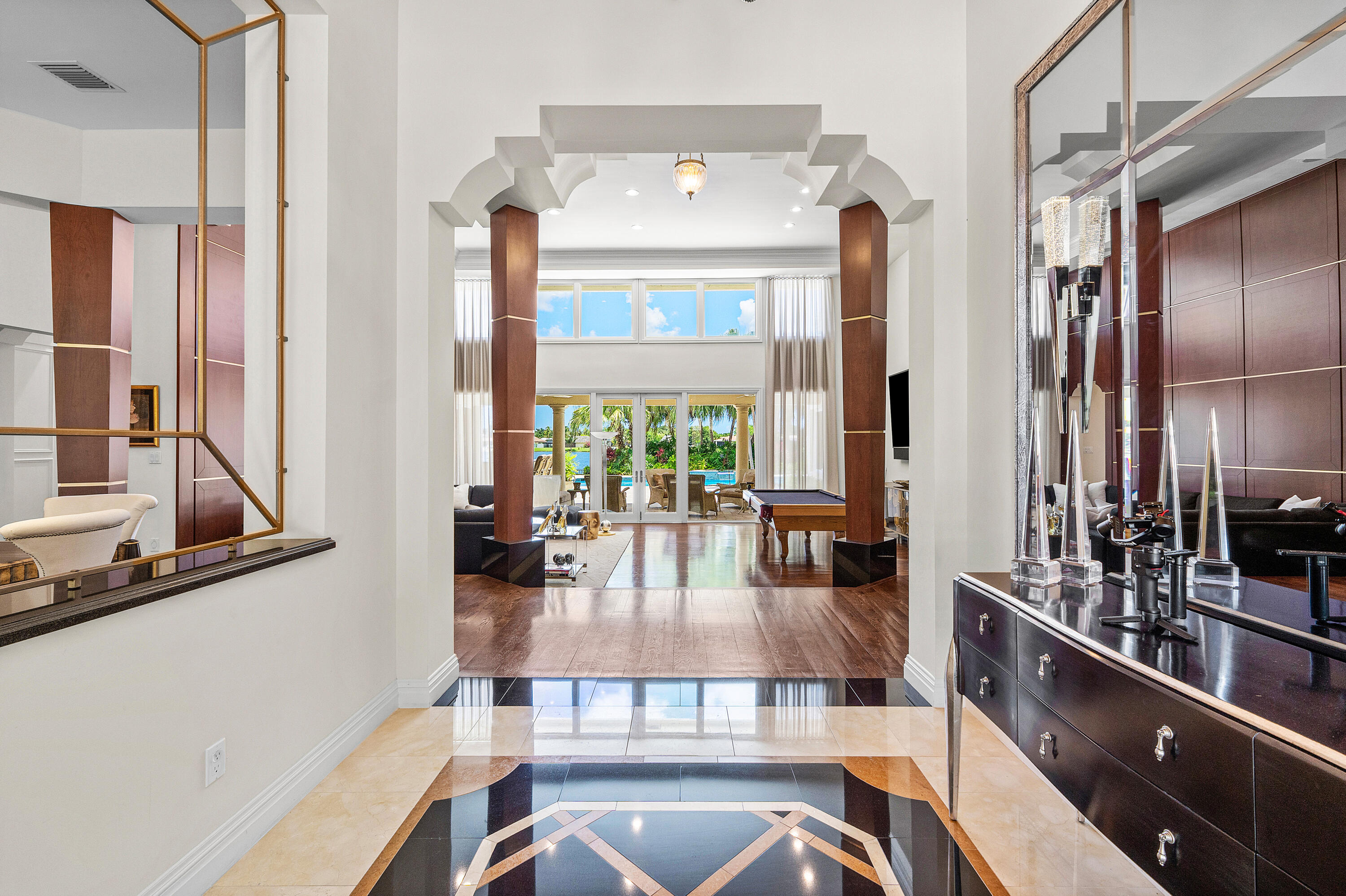 This exceptional lakeside estate blends sophistication, comfort, and timeless design. Nestled beneath a canopy of mature trees and approached by a circular driveway, the home makes an impressive first statement. Inside, rich wood tones, elegant volume ceilings, and refined finishes create a warm yet luxurious atmosphere. The formal living room is a stunning centerpiece, featuring a wet bar and expansive glass doors and windows that showcase serene lake views. The gourmet kitchen is a chef's dream, equipped with a Wolf six-burner gas stove, a Sub-Zero refrigerator, a wine cooler, and a warming drawer. The oversized dining area seamlessly connects to the open family room, while the formal dining room provides an ideal setting for entertaining. The expansive primary suite serves as a