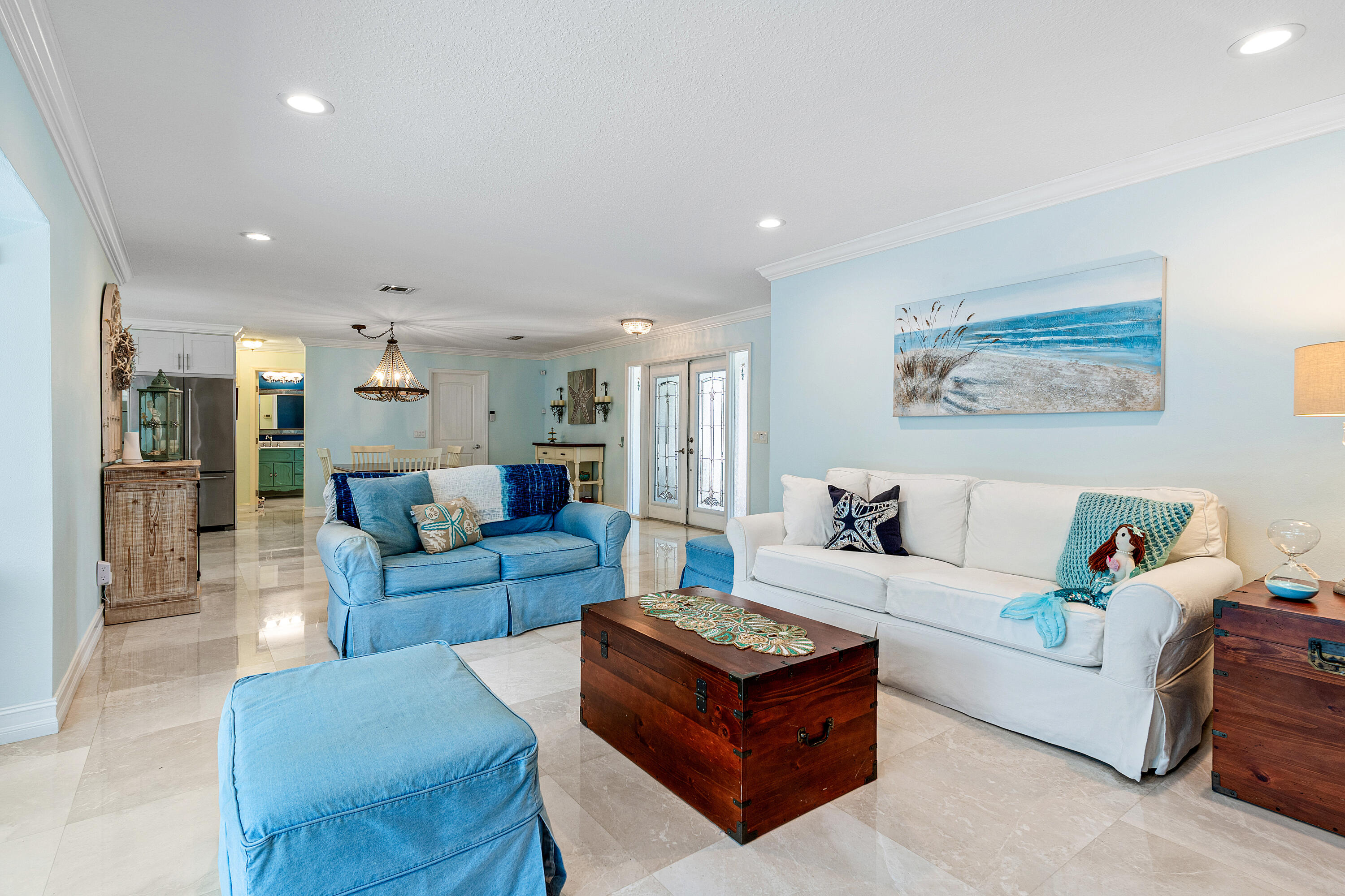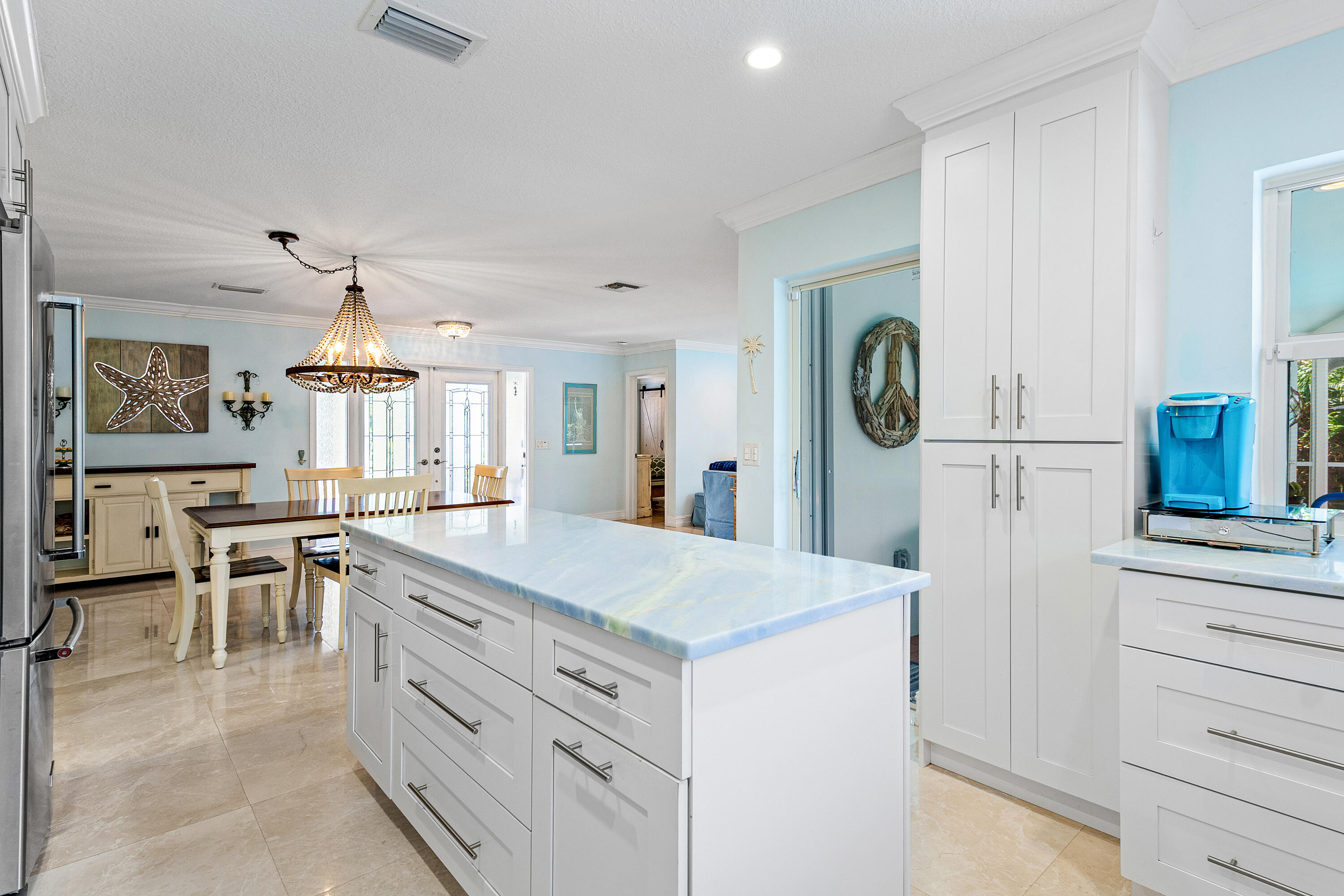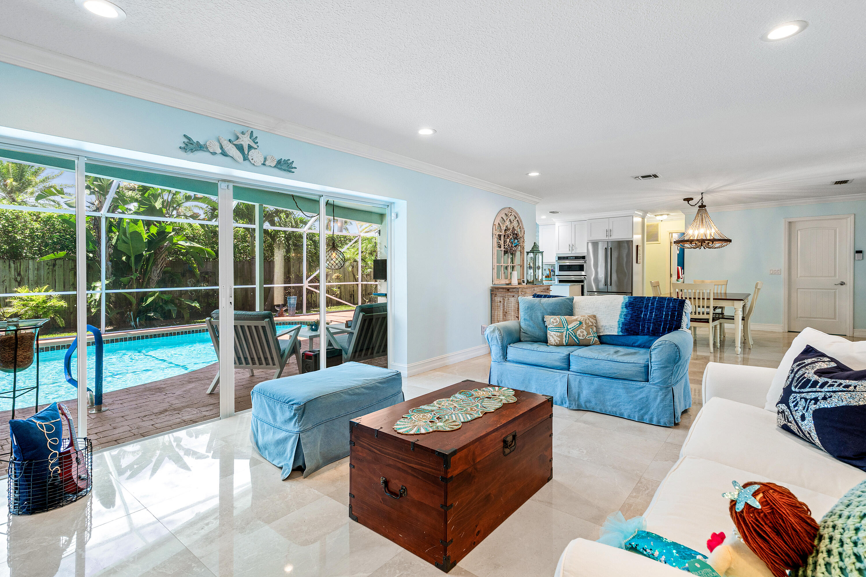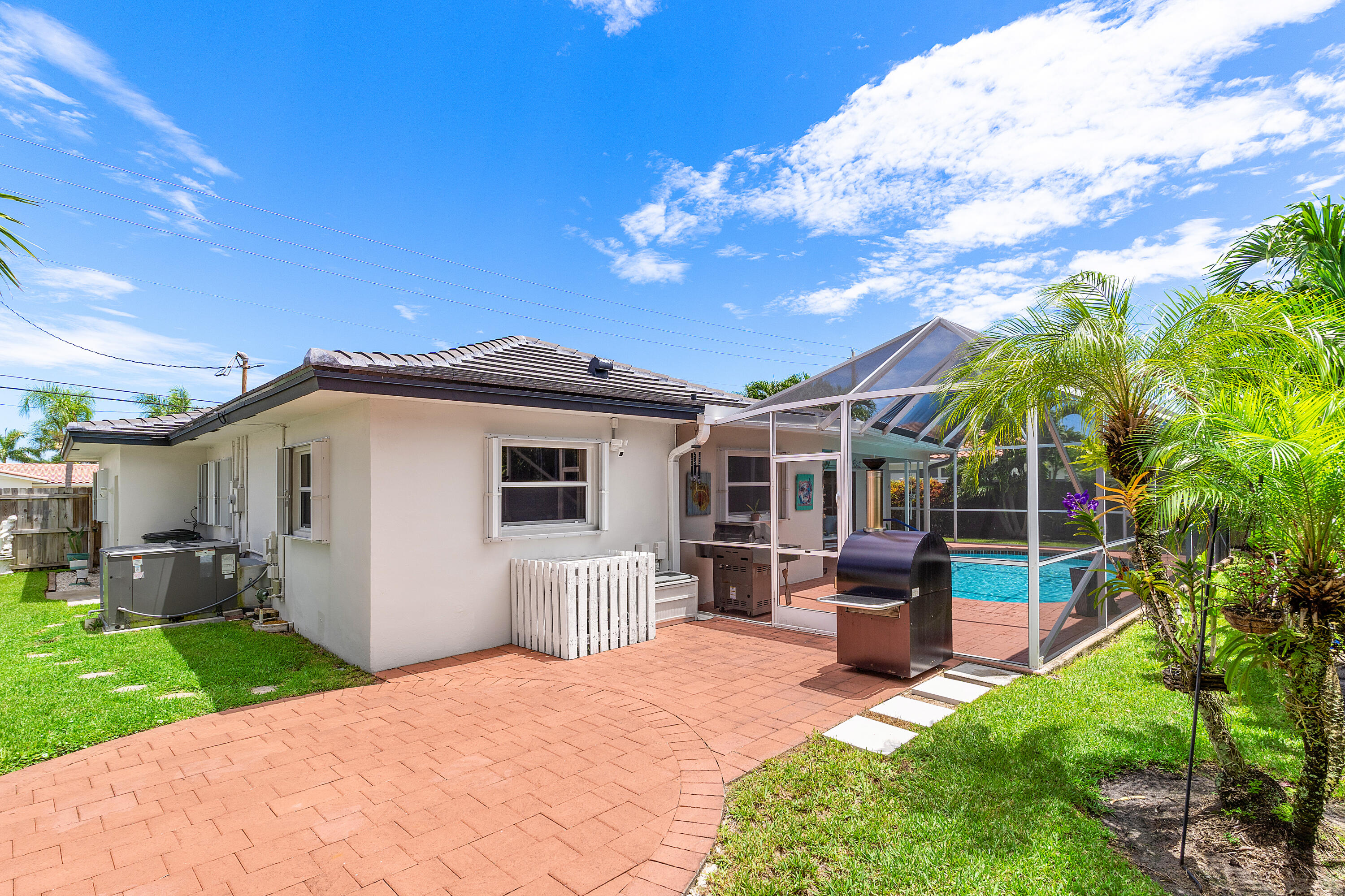 NO HOA in East Boca Raton, this charming and fully updated 2-bedroom, 2-bath single-family home is ideally located east of US1, just minutes to beaches, shopping, and dining. This property has been beautifully renovated with marble flooring throughout, a stunning kitchen featuring quartzite countertops, white shaker cabinets, marble backsplash, and new appliances including a gas range. Roof (2023), A/C (2022).Enjoy outdoor living in the spacious, fully fenced backyard, private pool, landscaping, and room to park a boat or RV OR add on to the home!Whether you're looking for a full-time residence or a vacation retreat, this move-in ready home is updated, easy to maintain and allows for taking full advantage of the South Florida Lifestyle!