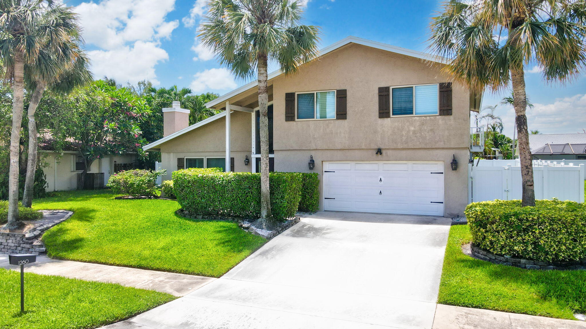 Discover this exceptional home in the highly sought-after East Boca's Pinelands North with no HOA. This charming residence features impact windows & doors, plantation shutters ,exquisite exposed wood beams, custom lighting & cozy fireplace The bright natural light kitchen boasts skylights, premium appliances that flows seamlessly into the spacious living perfect for entertaining. The living area opens through sliding glass doors to the private huge backyard outdoor oasis. Upstairs offers a large primary suite with a renovated bath, along with two guest rooms & an updated guest bathroom. Recent upgrades include a new upstairs HVAC (2025), a roof (2018). New deck, an outdoor staircase, & a new pool heater. The backyard has a new fenced large yard, outdoor kitchen, firepit, & lush fruit Tree