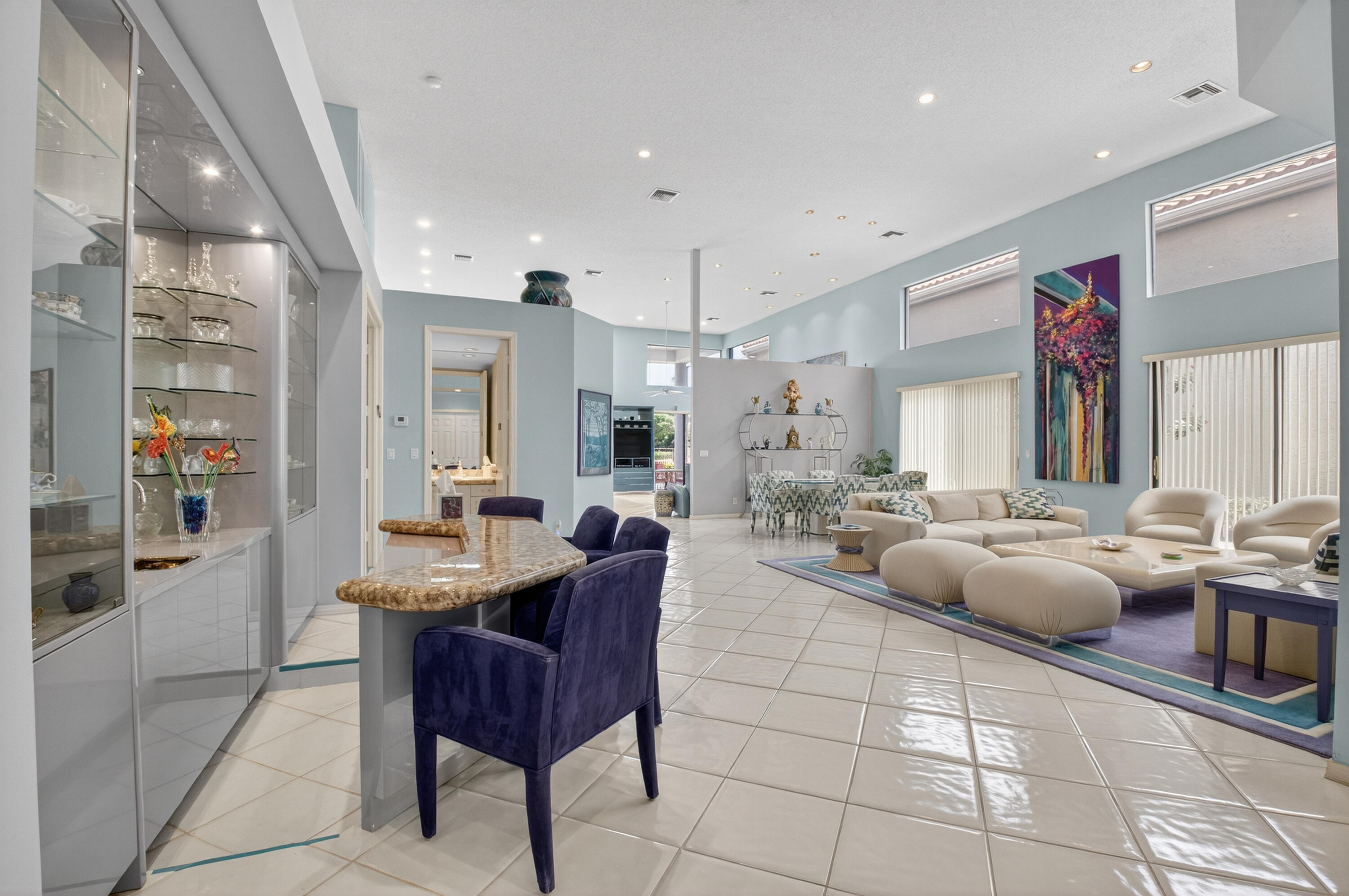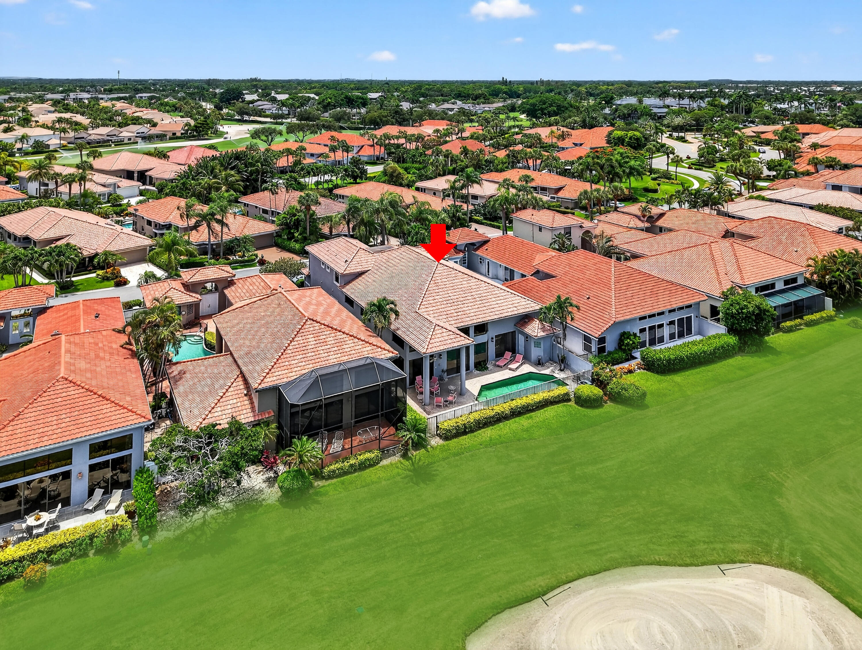Fabulous Home in Manchester at the Polo Club of Boca Raton!This stunning residence offers 2 bedrooms on the main level, including a spacious primary suite featuring his and her baths, one of which serves as a cabana bath with direct access to the private pool--perfectly positioned to enjoy breathtaking golf course views.The second bedroom on the main floor can function as either a guest room or home office and includes its own full bath. The open-concept layout boasts a large living room and dining area, an open kitchen/ family room--all on one level--plus a convenient powder room.