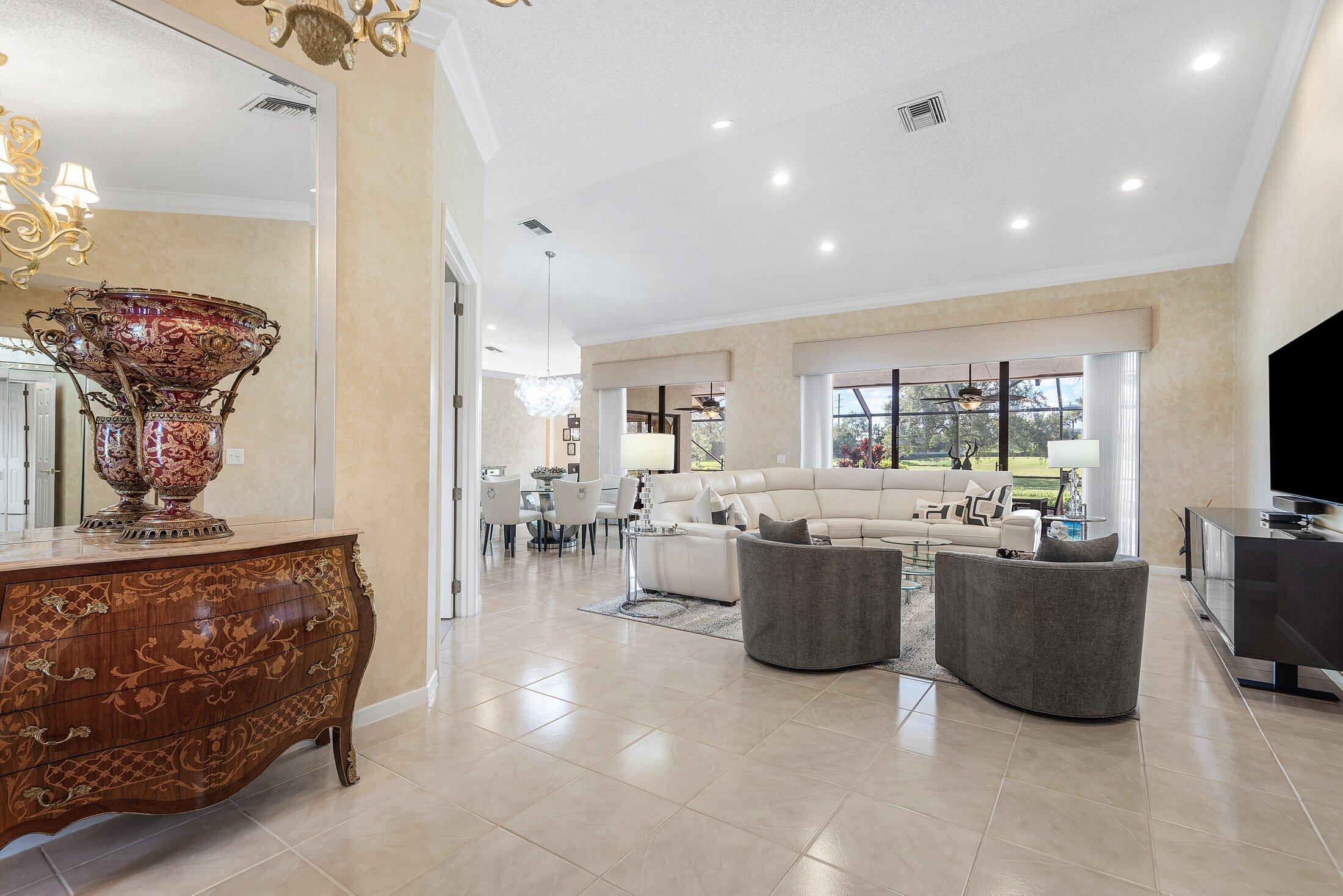 Set in the prestigious Boca Woods Country Club, this meticulously maintained 3-bedroom, 2-bath home offers a perfect blend of elegance and functionality offering privacy and comfort for both owners and guests. Serene views of the pool and golf course can be seen from the living room, kitchen, and primary bedroom while the screened patio provides an inviting space for relaxation and entertaining. Boca Woods Country Club Community offers resort style amenities, including two championship golf courses, Har Tru tennis courts, pickleball courts, state of the art fitness center, spa, game room, fully renovated clubhouse with fine dining and much more! Mandatory Country Club membership required $120,000.