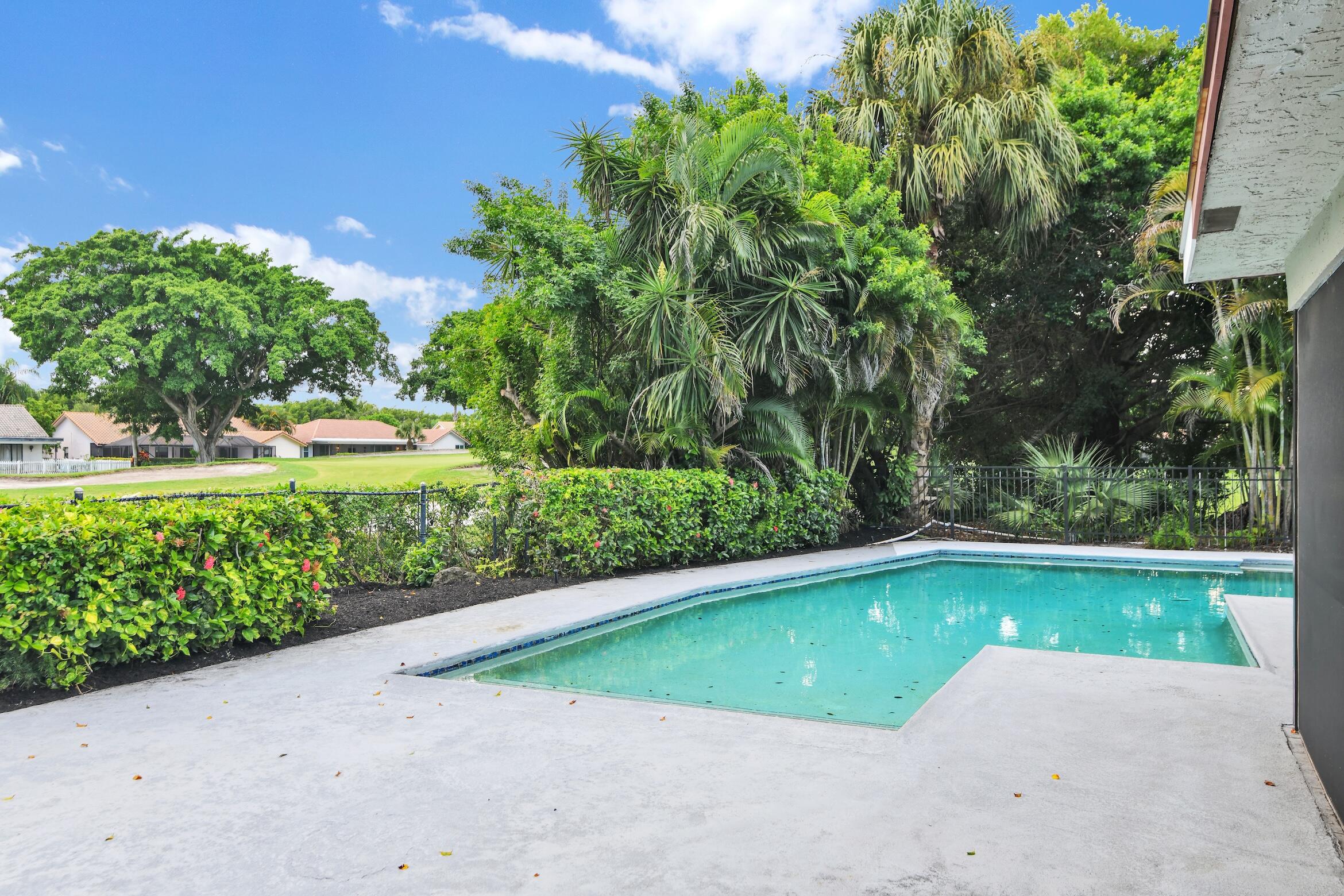 NEW ROOF. COMPLETE HURRICANE IMPACT PROTECTION. Air conditioners (2) replaced in 2023. Pie shaped .36 acre lot with circular driveway.No membership required lot. Near houses of worship.Professional GAS stove, appliance garage, subzero refrigerator, granite counters in the beautifully remodeled kitchen ideal for Gourmet cooks. Built-in Honduran Rosewood 10 seat Island with retractable door. Built-in wine cooler with room for 54 Bottles. Master bedroom overlooks patio, and has 2 walk-in closets, and large bathroom with tub and separate shower. Large screened in Patio with DCS outdoor kitchen with rotisserie and custom exhaust. Large, fenced yard with large deck and 37X18 ft pool with expansive view of the 14th hole fairway.Well for sprinklers saves water