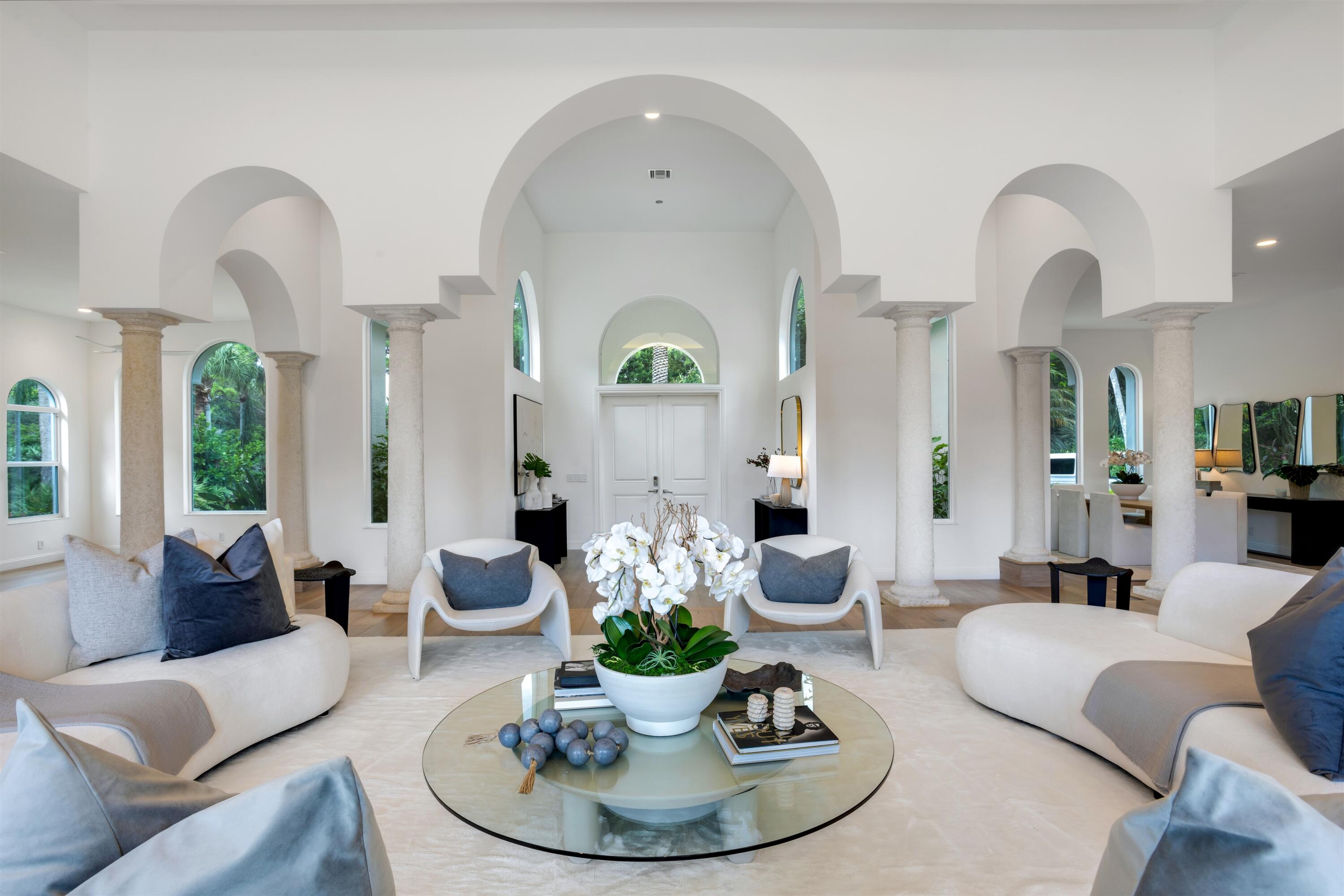Le Belle Refuge, a 5 Bedroom European Villa sited on a 3 +/- Acre Lakefront Parcel, is located in renown Le Lac which offers world-class security & the utmost privacy w/i minutes to Boca Raton private airport & prestigious private schools. This single level luxury residence offers long lake views and glorious sunsets from nearly every room. The north wing is comprised of the primary suite, a gym & office/optional bedroom & half bath. The south wing is comprised of 3 ensuite guest rooms. The heart of the home is a grand living room, an open kitchen/breakfast area/ family room flowing out to a screened lakefront loggia. Le Lac is comprised of only 32 estates nestled on 200 acres of sprawling lawns & sparkling lakes and is the only community in Central Boca Raton that permits boating.