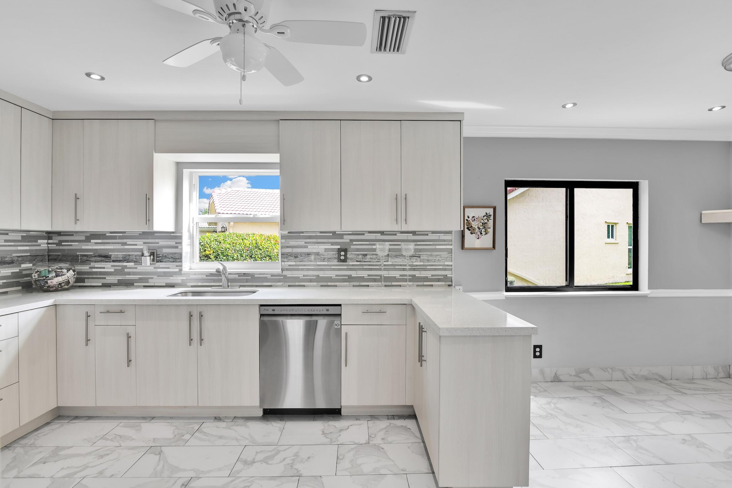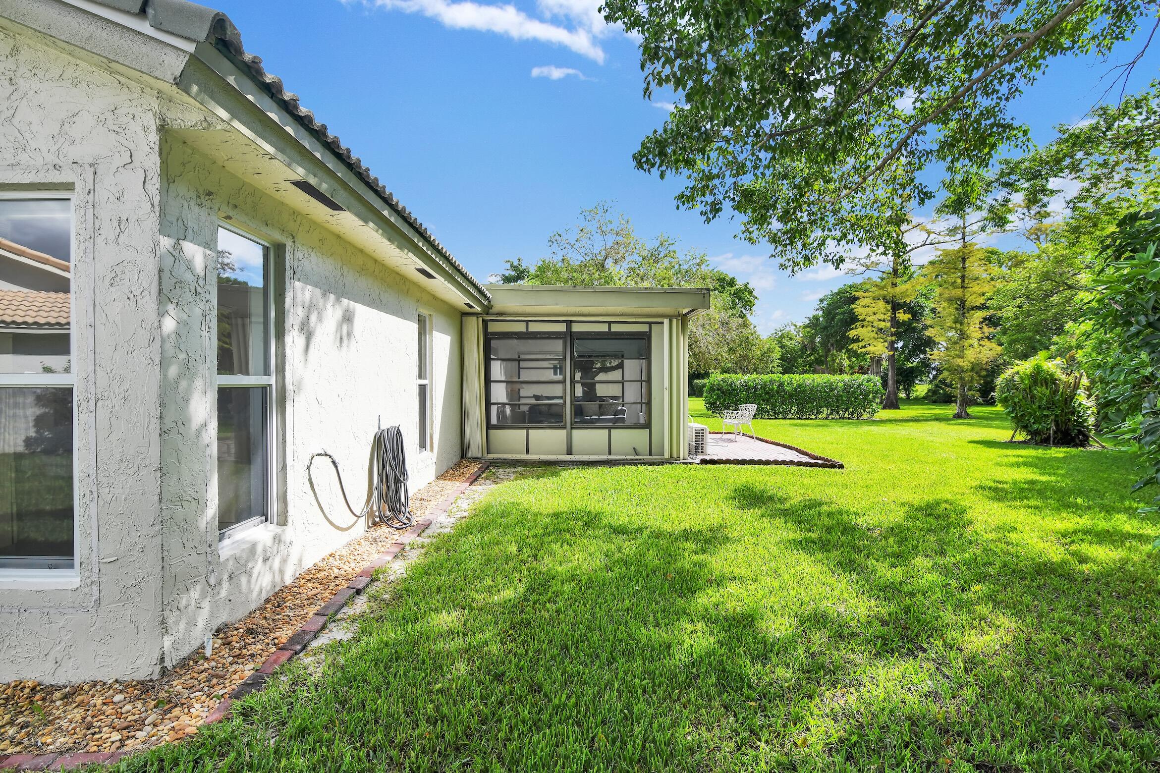 Located in the prestigious 55+ community of Cloverfield, close to places of worship, stores, and only minutes to the beach and downtown Boca Raton. It was updated with hurricane impact glass windows in most of the windows and shutters in the Florida Room windows. The kitchen has newer stainless steel appliances, countertops and cabinets were update in 2021. Newer air conditioning installed in the the Florida Rm. The house has 2 spacious bedrooms with ample closets, a two car garage, vaulted ceilings, a spacious living/dining room, well lit spaces with windows and sliding glass doors overlooking a very nice and private back yard. The community has a pool and low HOA fees.