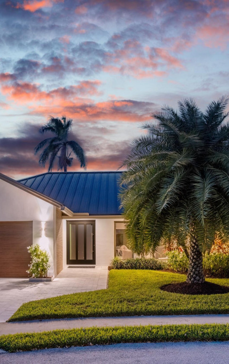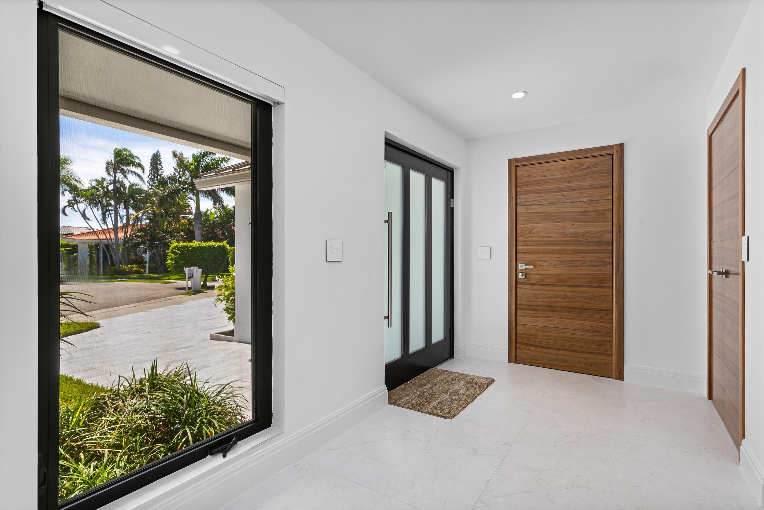 One-story captivating custom contemporary home in Boca Bay Colony, a highly esteemed waterfront community. Fully renovated in 2022, this 4 bedroom, 2.1 bathroom, 2-car garage house blends modern elegance with chic and casual design in the heart of Boca Raton. Impeccably designed interiors and lushly landscaped exteriors create the perfect backdrop for living and entertaining. Attention to detail and no expense spared, this home has new impact windows and doors, a brand new metal roof, and porcelain floors throughout. The top-of-the-line custom kitchen is an entertainer's dream with high end GE Monogram stainless steel appliances and an undercounter wine cooler. The large island boasts waterfall edge quartz countertops and an induction cooktop with vent.