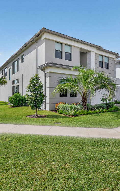 Discover this stunning Polynesia model on a rare oversized corner lot with southern exposure, filling the home with natural light from sunrise to sunset. Enjoy soaring corner windows extending to the second-floor loft, creating an airy, modern ambiance and architectural appeal. This 5-bedroom, 7-bath home features upgraded concrete-look porcelain tile, recessed lighting, and an epoxy-finished garage floor. Relax with serene corner lake views and envision your future pool basking in all-day sun. Located in Boca Raton's premier Lotus Palm community with resort-style amenities and top-rated schools.
