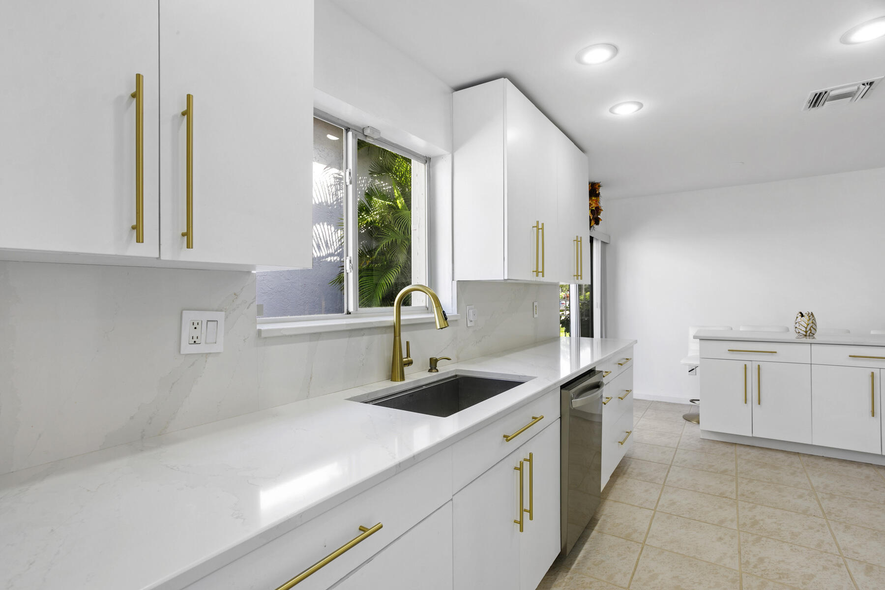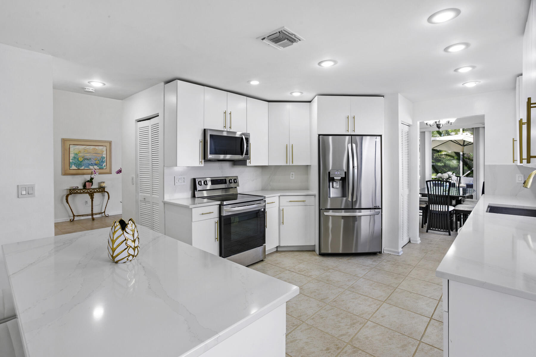 Beautifully maintained 4 bedroom, 2.5 bath two-story pool home with additional downstairs bonus room! Situated at the end of a quiet cul-de-sac, in the desirable Ventura community of Boca Raton's Mission Bay, is this bright CBS 2,259 square foot home with sizable two car garage! Vaulted ceilings in the foyer and living room with recessed lighting provides an openness and elegance as you enter the home. Allow your eyes to gaze just outside the living room to the sparkling screened-in crystal blue pool, while offering additional entertainment space on the newly painted pool deck backed by lush palms. Enjoy the formal dining area just off the pristinely renovated kitchen! Boasting all new quartz countertops, white cabinets, stainless steel LG appliances, an island with additional ...