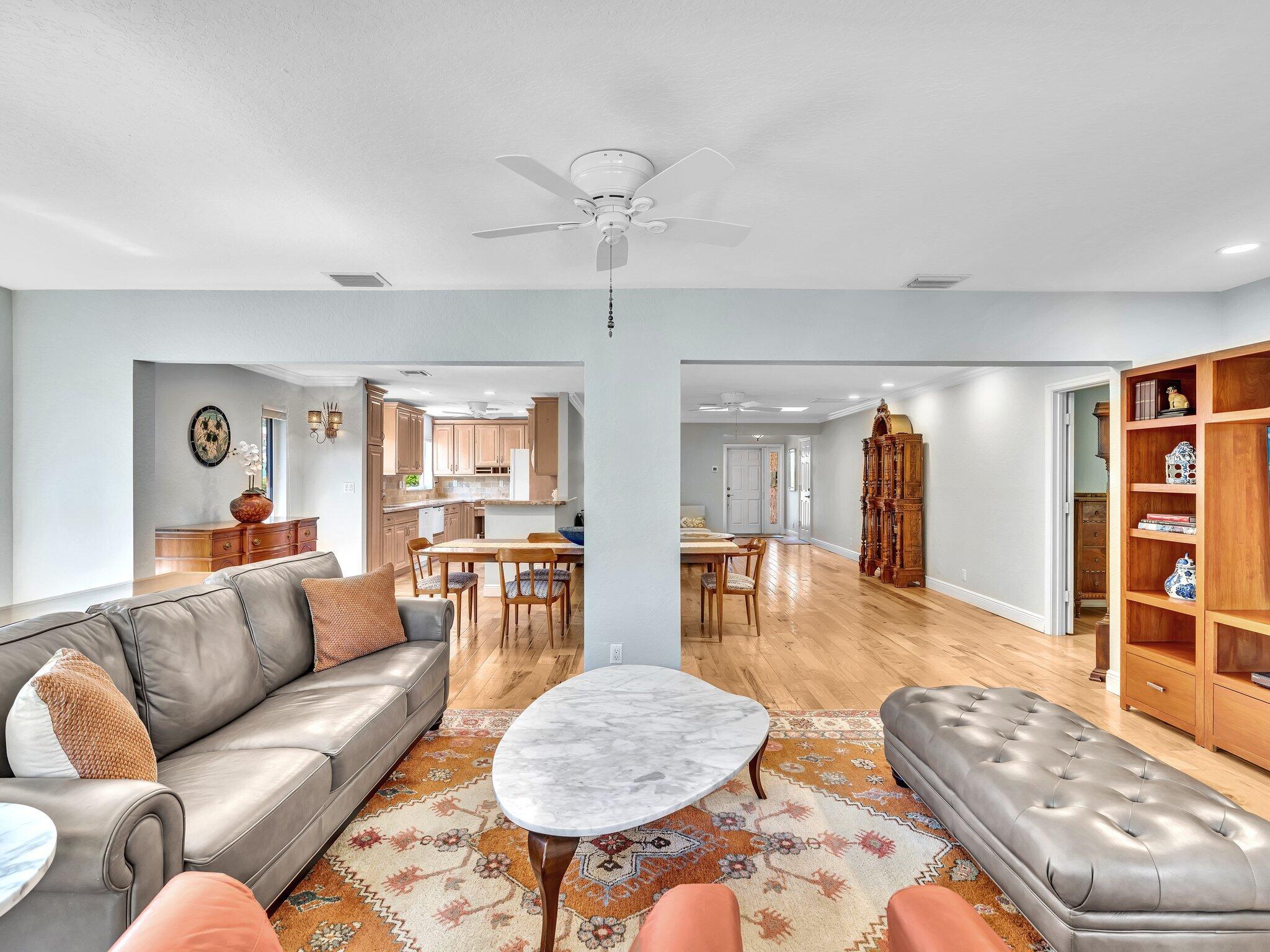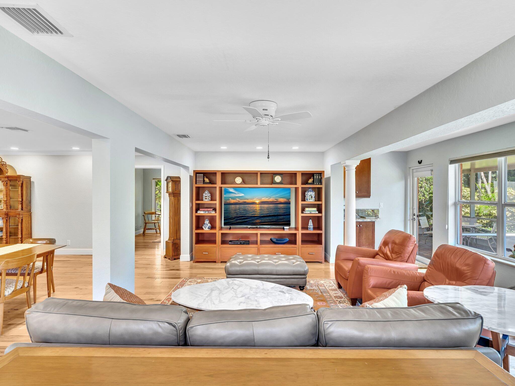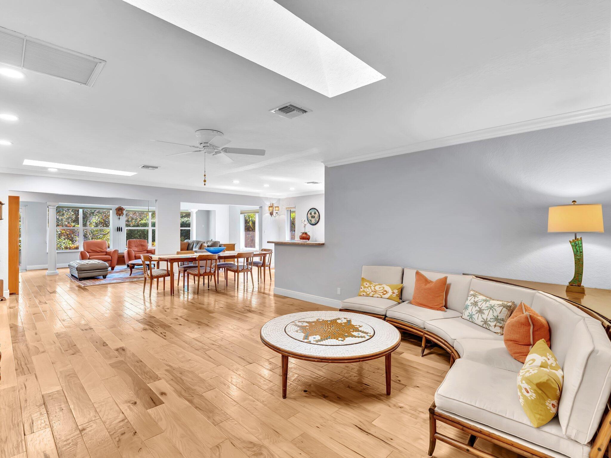 Picture perfect East Boca Raton jewel just minutes to the beach, Downtown, Mizner Park, and the art museum! This spacious home features a split bedroom floor plan with two primary suites, an extended family room with bar area, and screened in porch set against a backdrop of trees and tropical foliage. Sleek hickory flooring, crown molding, and whitewash wood cabinetry create an elevated beachy vibe while impact windows and doors bathe the home in an abundance of natural light. Lincolnwood Village is an all ages, pet friendly boutique community featuring a community pool and tennis/pickleball courts. Mrs. Clean Lives Here!