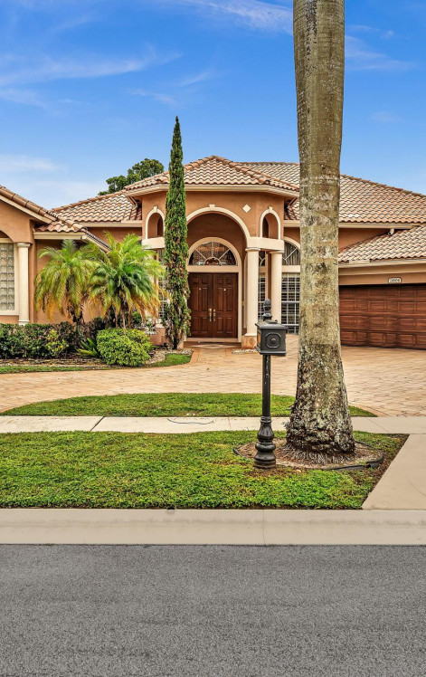 Welcome to the best kept secret in Boca Raton! This 5 bedroom 3.1 bath home sits in a private gated single street community of only 28 homes. This one story home features a triple split floor plan on huge lot over 11,700 sq. ft w/ 3 car garage & XL circular driveway that holds an additional 6-7 cars. Double door entry way overlooking the screened & heated pool w/ a covered entertaining area has a fantastic pass through window going to the large open kitchen w/ beautiful wood cabinets, granite counters & stainless steel appliances, breakfast nook & huge family room. Gorgeous wainscoting in main areas, beautiful coffered high ceilings, separate formal dining & living rooms, extra large primary w/ separate sitting area, 2 huge walk in closets, separate soaking tub. 5th bedroom used as office
