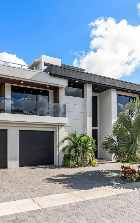 Built in 2023 by Primo Construction, this striking three-story modern estate in Boca Villas offers 6 bedrooms, office, 6.1 baths, and 4,916 sq. ft. of exceptional design and craftsmanship. Constructed entirely of concrete on every level with no wood, the home features porcelain flooring, 24-foot ceilings, and floor-to-ceiling glass walls.The chef's kitchen showcases white lacquered cabinetry, Wolf 60'' range with double ovens, Sub-Zero refrigerator and freezer, a commercial exhaust system, and massive walk-in pantry. A glass elevator, custom 600-piece hand-blown glass installation, and glass railings elevate the interiors. Full house generator, Smart-home technology includes Leviton & Home Assistant integration, Ubiquity Wi-Fi, and five Mitsubishi ultra-quiet commercial A/C zone