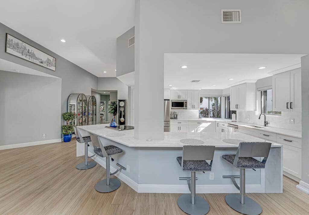 GORGEOUS remodeled home is better than buying new & is one of the prettiest & lowest prices in Villa Flora! This One story sprawling ranch is spectacular! OPEN CONCEPT is a breath of fresh air from the moment you enter the perfectly manicured double door entry, WOW! 2022 newer roof, newer A/c,newer tankless H/w Htr, Porcelain plank flooring throughout,natural stone quartzite counters & backsplash with waterfall edge, high end stainless appliances,remodeled porcelain bathrooms, this is one of the most pristine, immaculate, move in ready Boca homes to buy!The private backyard adorned by the perfect landscaping creates the perfect retreat for relaxation! A non mandatory spectacular country club is available if you wish to join,but is not mandatory.Best location in Boca Raton! LOVE IT!