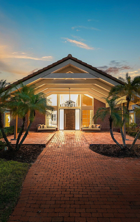 Contemporary Boca Raton Masterpiece with private 82-foot Olympic-like Heated Saltwater Pool and Spa and Impressive Decorative Stone Courtyard with Waterfall Features Throughout. A Tiki-Hut lounge-area and massive backyard complete the property. Welcome to a realm of unparalleled luxury at 6641 Giralda Circle in central Boca, a stunning 5-bedroom, 6.5-bathroom newly renovated and expanded from 2022-2023 on an incredible 1.55 acre lot with the finest craftsmanship and imported finishes throughout. Sleek lines and bespoke European finishes permeate every inch of this captivating single-story, 5,990-square-foot under-air residence with 8,146 total square-feet. Ornate A-frame ceiling details add a unique warm grandeur with custom wood and stone wall coverings that infuse warmth and style into