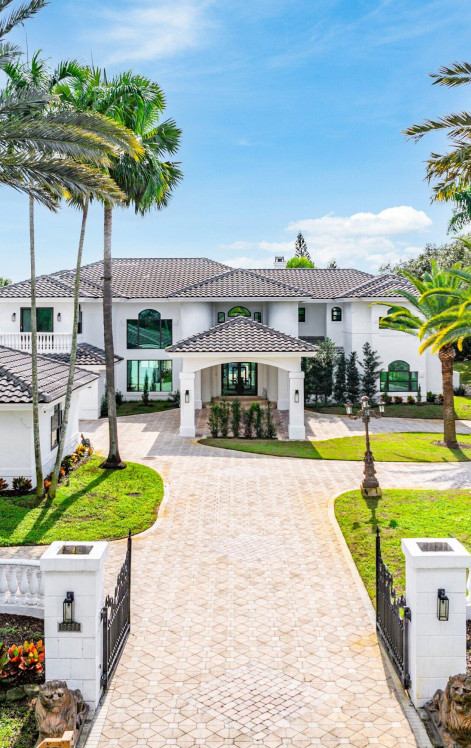 Beautifully reimagined & completely redone Interior, this 1.14-acre estate in the exclusive guard-gated community of Fieldbrook Estates blends timeless elegance with modern luxury. A grand tropical drive lined with Royal and Canary palms leads to a dramatic portico and soaring double-door entry opening to a magnificent foyer with a sweeping dual staircase. Expanded & enhanced throughout, 9BD & 8.2BA with exquisite finishes, custom ceilings, crown molding, state-of -the-art Home theatre, Gym, Sauna & a gourmet chef's kitchen with top-tier appliances. The spacious layout includes multiple living areas plus a beautifully finished 2-bedroom guest house with full kitchen, office, private driveway, & separate entrance. Minutes to A-rated schools, beaches, shopping, & fine dining, & airports--
