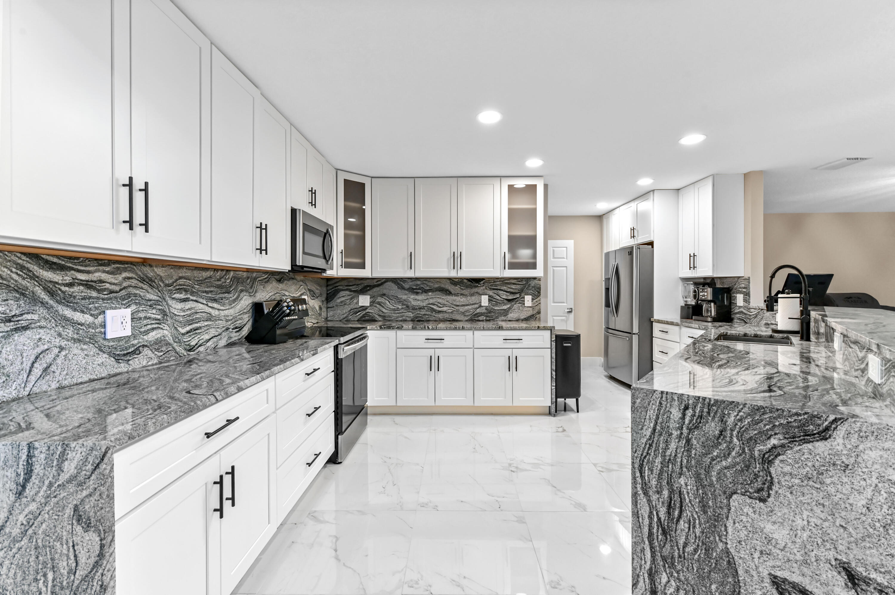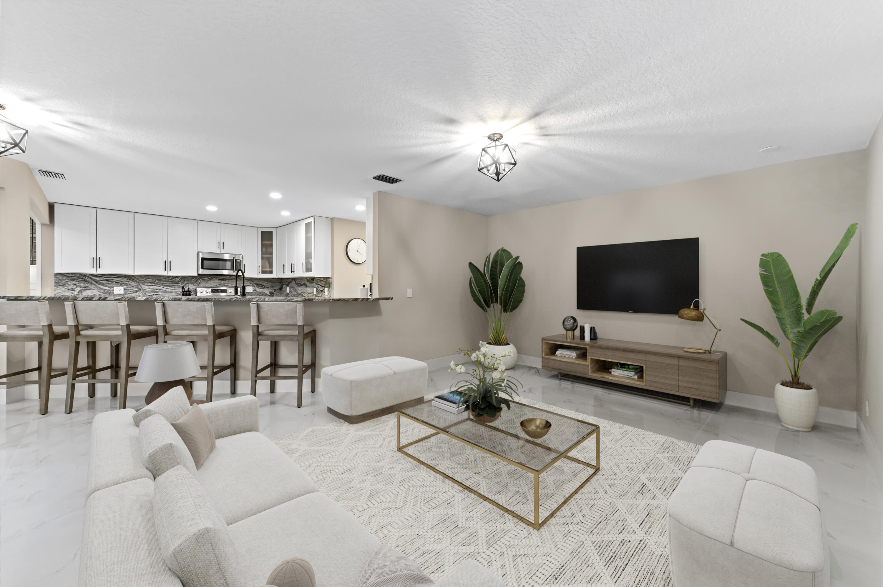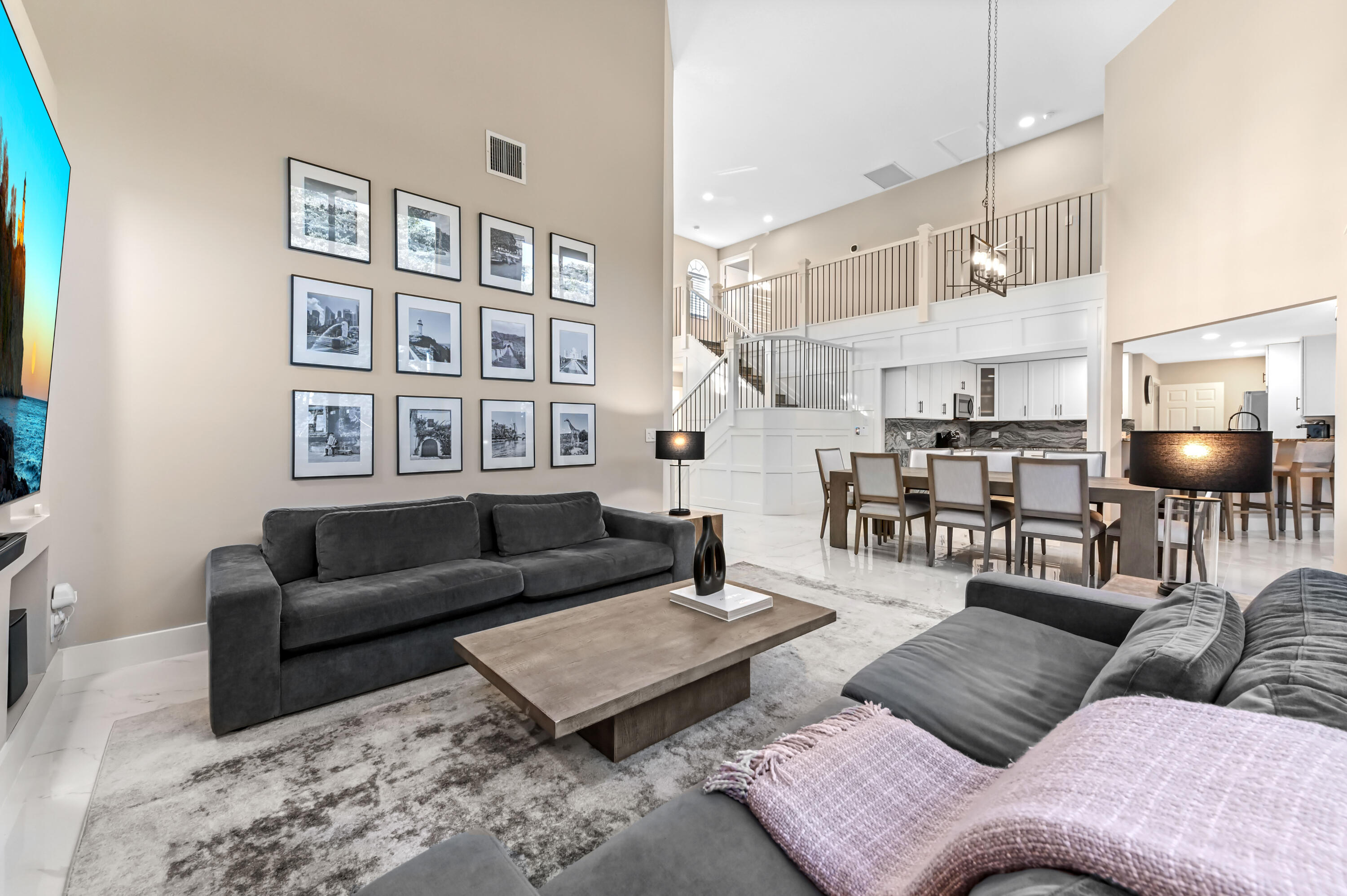 Enter through the double doors into this beautifully remodeled 3-bed, 2.1-bath home. The bright open floor plan is ideal for entertaining. The layout seamlessly flows from the living area through the dining room into the family room. A waterfall-edge countertop, custom lighting, and a built-in wall unit are just a few of the home's standout features. The oversized first-floor primary suite features a custom walk-in closet and a stunning spa-like bath. Upstairs, two bedrooms share an updated Jack-and-Jill bath with dual sinks. Enjoy outdoor dining and relaxation in the oversized screened lanai. Upgraded smart-home technology allows for effortless control from anywhere. Minutes from I-95 and zoned for A-rated schools.