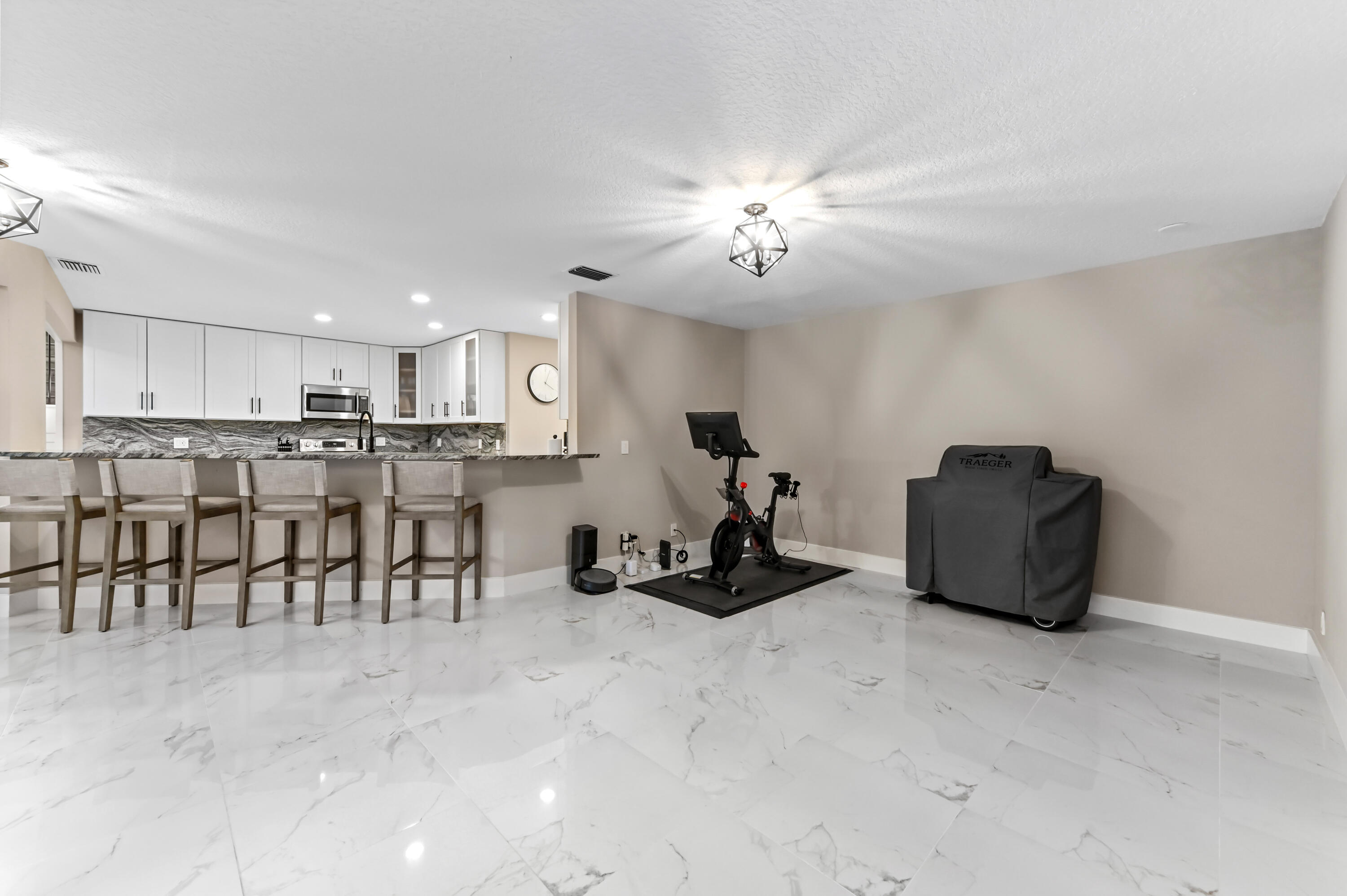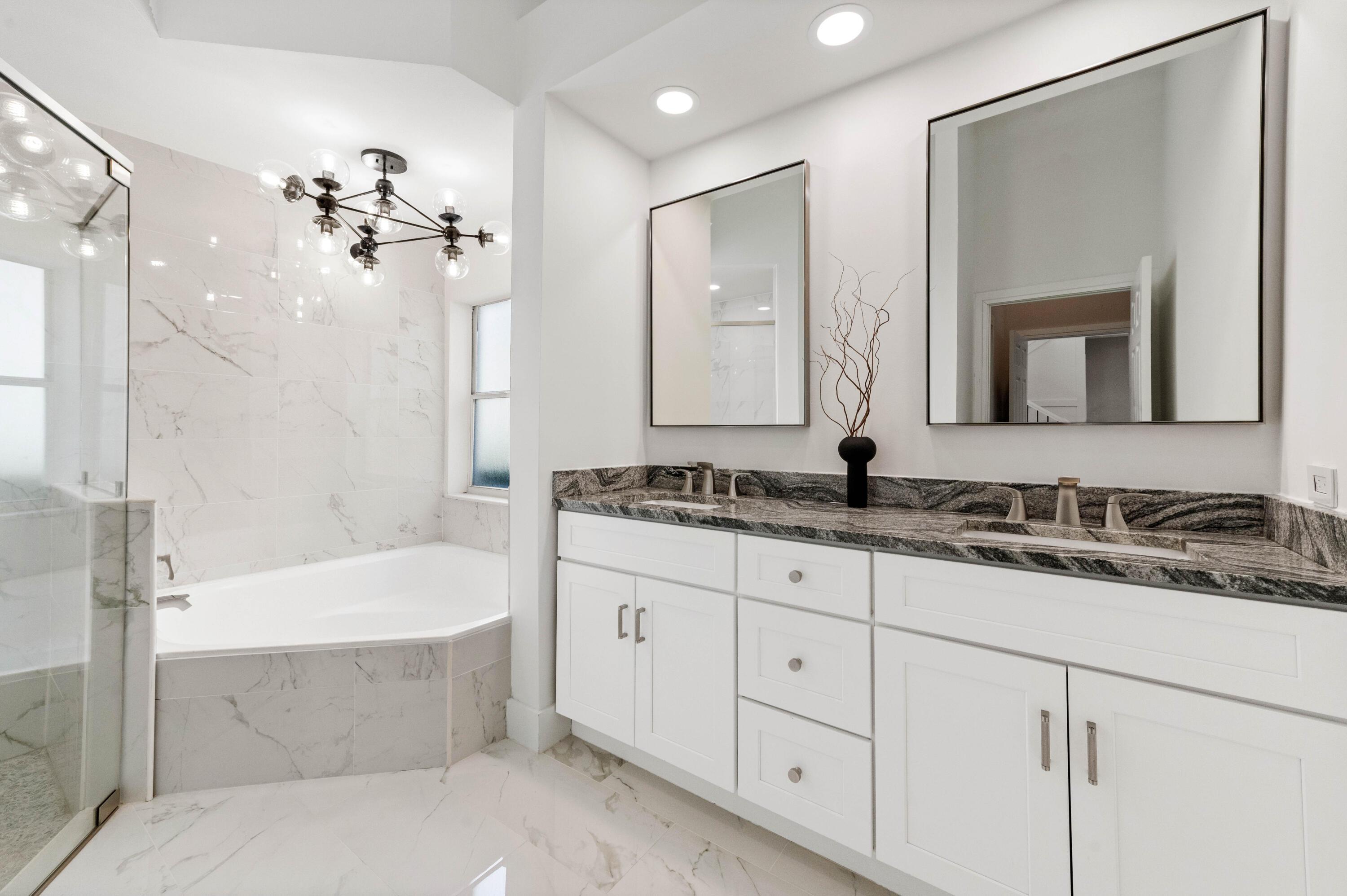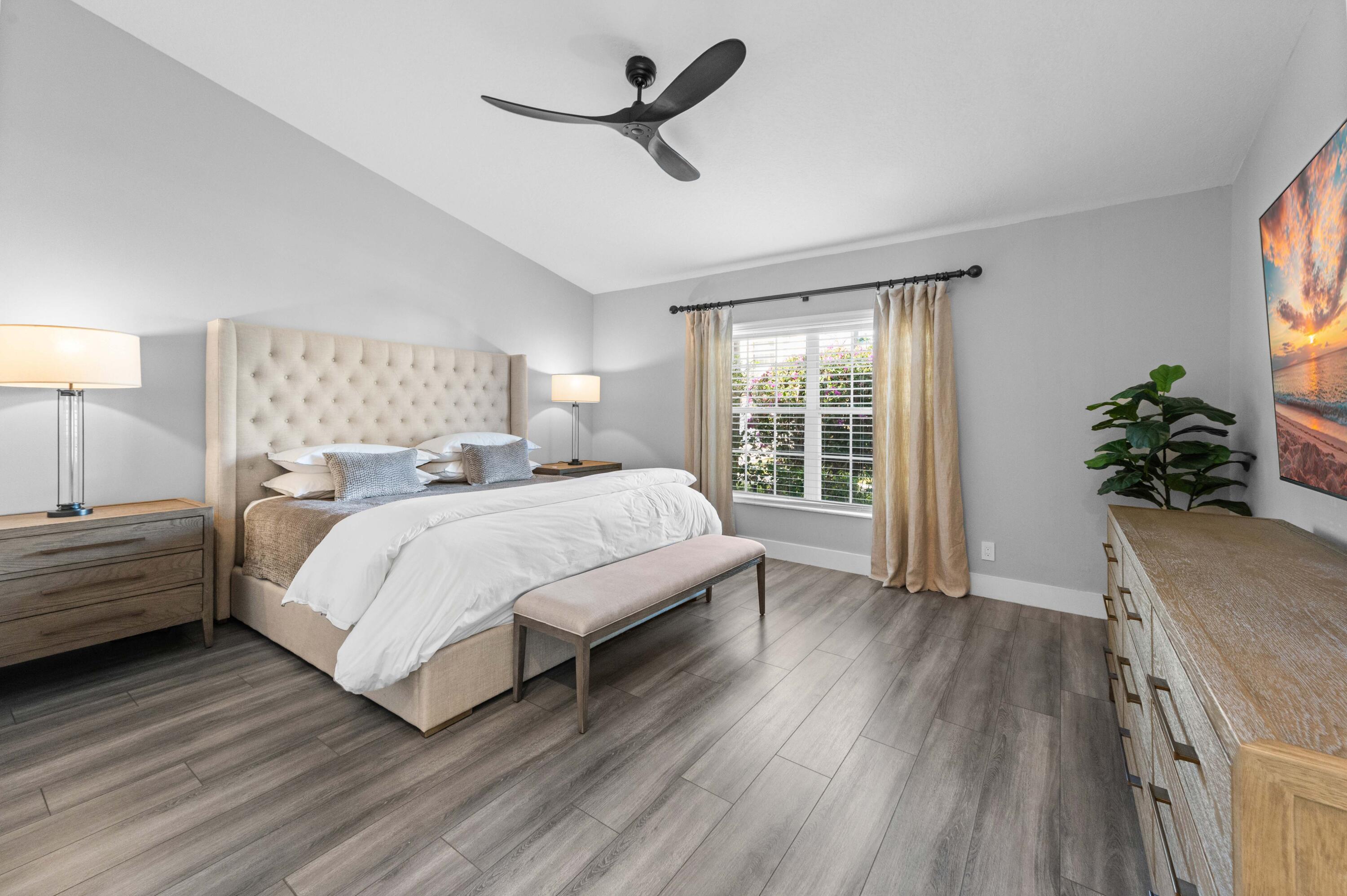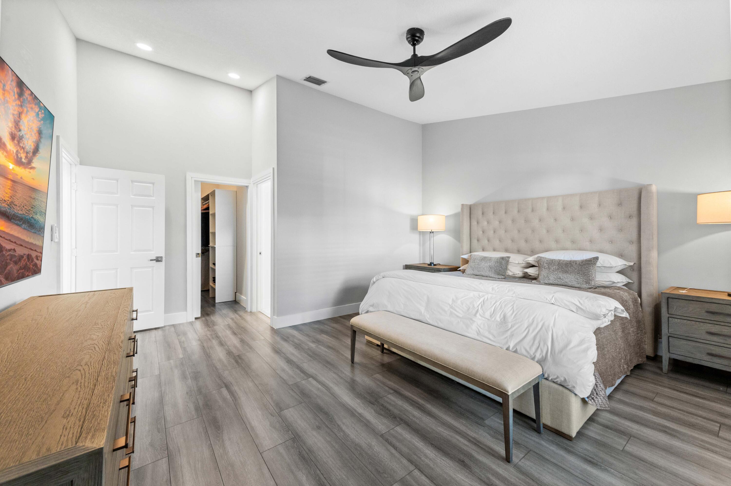 Enter through the double doors into this beautifully remodeled 3-bed, 2.1-bath home. The bright open floor plan is ideal for entertaining. The layout seamlessly flows from the living area through the dining room into the family room. A waterfall-edge countertop, custom lighting, and a built-in wall unit are just a few of the home's standout features. The oversized first-floor primary suite features a custom walk-in closet and a stunning spa-like bath. Upstairs, two bedrooms share an updated Jack-and-Jill bath with dual sinks. Enjoy outdoor dining and relaxation in the oversized screened lanai. Upgraded smart-home technology allows for effortless control from anywhere. Minutes from I-95 and zoned for A-rated schools.