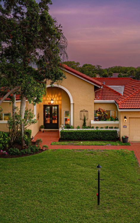 Where in Central Boca can you find a stunning home sitting on an over 12,000 sq. ft. lot overlooking a beautiful canal & golf course? The answer, right here at 5986 Vista Linda Lane. This beautiful home is located in The Cloisters, a stunning GATED community in central Boca within walking distance to Village Pointe Shopping Center. Immediately upon opening the door you are greeted with 20 foot ceilings & the stunning view of your amazing backyard! The chef's kitchen features best in class KraftMaid kitchen cabinets, stainless steel appliances, a beautiful kitchen island with a breakfast room, and handpicked granite. Enjoy the privacy of having a split floor plan----the master suite encompass the entire left wing of the home.The primary bedroom overlooks the entire backyard