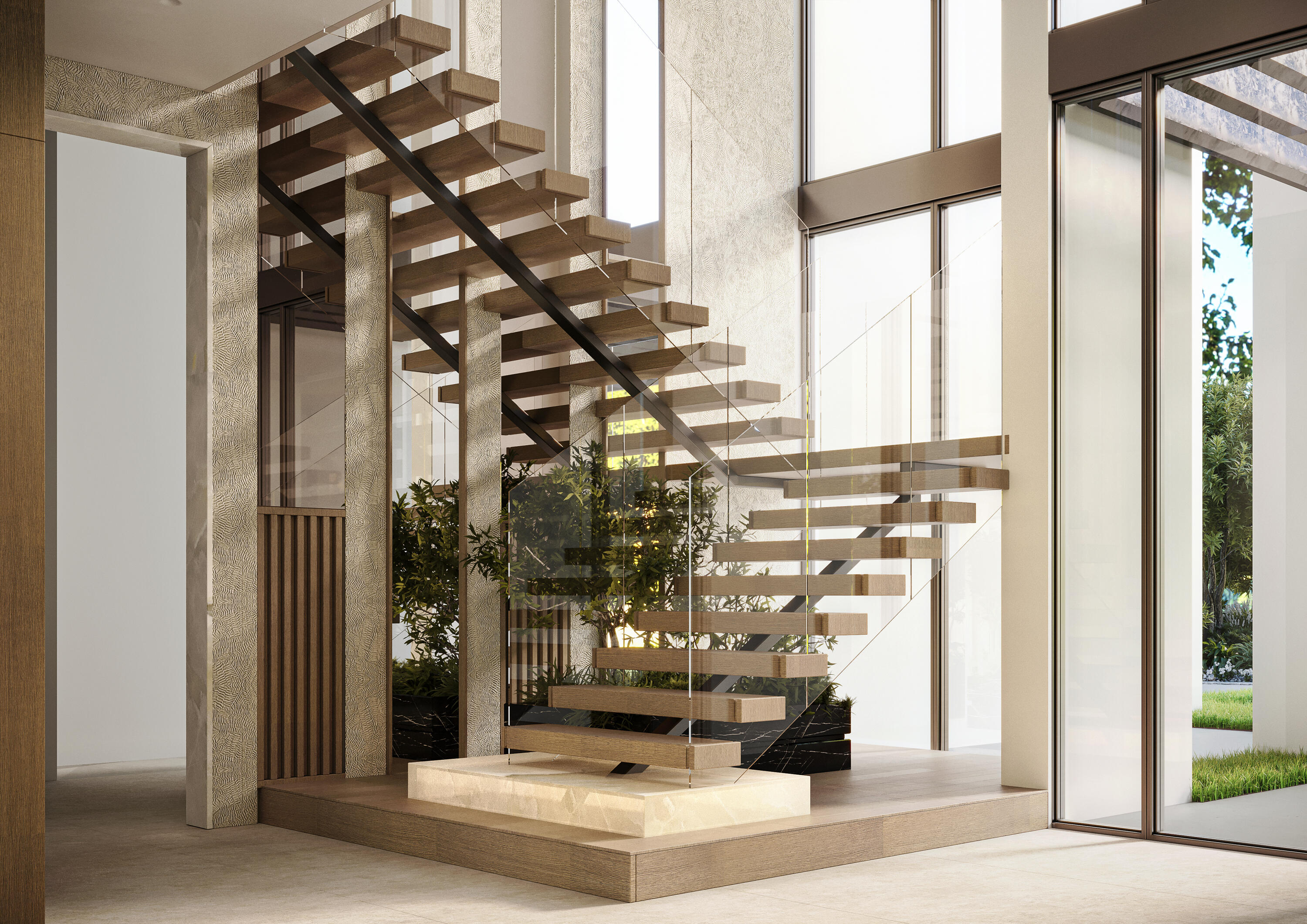 A Showstopping Golf Course Masterpiece in Royal Palm Yacht & Country Club built by Primo Construction & designed by Arianna Tascione. This bespoke estate epitomizes the pinnacle of luxury living in the prestigious Royal Palm Yacht & Country Club. With 8,567 square feet under air and 12,301 total square feet, this six-bedroom, eight-and-a-half-bath architectural triumph is perfectly positioned on a premier golf course lot, offering uninterrupted vistas and meticulously curated interiors that reflect exceptional craftsmanship and modern sophistication. From the moment you arrive, the residence impresses with its oversized U-shaped motor court, lush landscaping, and a beautiful decorative wall fountain at the entry that offers a serene and welcoming introduction to the home