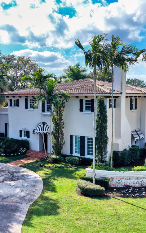 This delightful residence has been skillfully redesigned to join all the elements of a California vibe with South Florida luxury living. The project achieved exactly the right blend of style, detail and quality. A majestic exterior elevation is poised against a gracious circular drive on a lush, oversized lot with privacy hedge and mature landscaping. This completely hurricane resistant residence features exterior block walls on the first and second levels as well as concrete 2nd floors also included are Impact windows and doors. Meandering Chicago brick paths, a canopy of oaks trees, lights gently illuminating an expansive span of oaks trees and perimeter palms, a backyard pre-wired for entertaining sound, designer tasseled awnings, a refreshed resort-style pool/deck, smart keyless entry