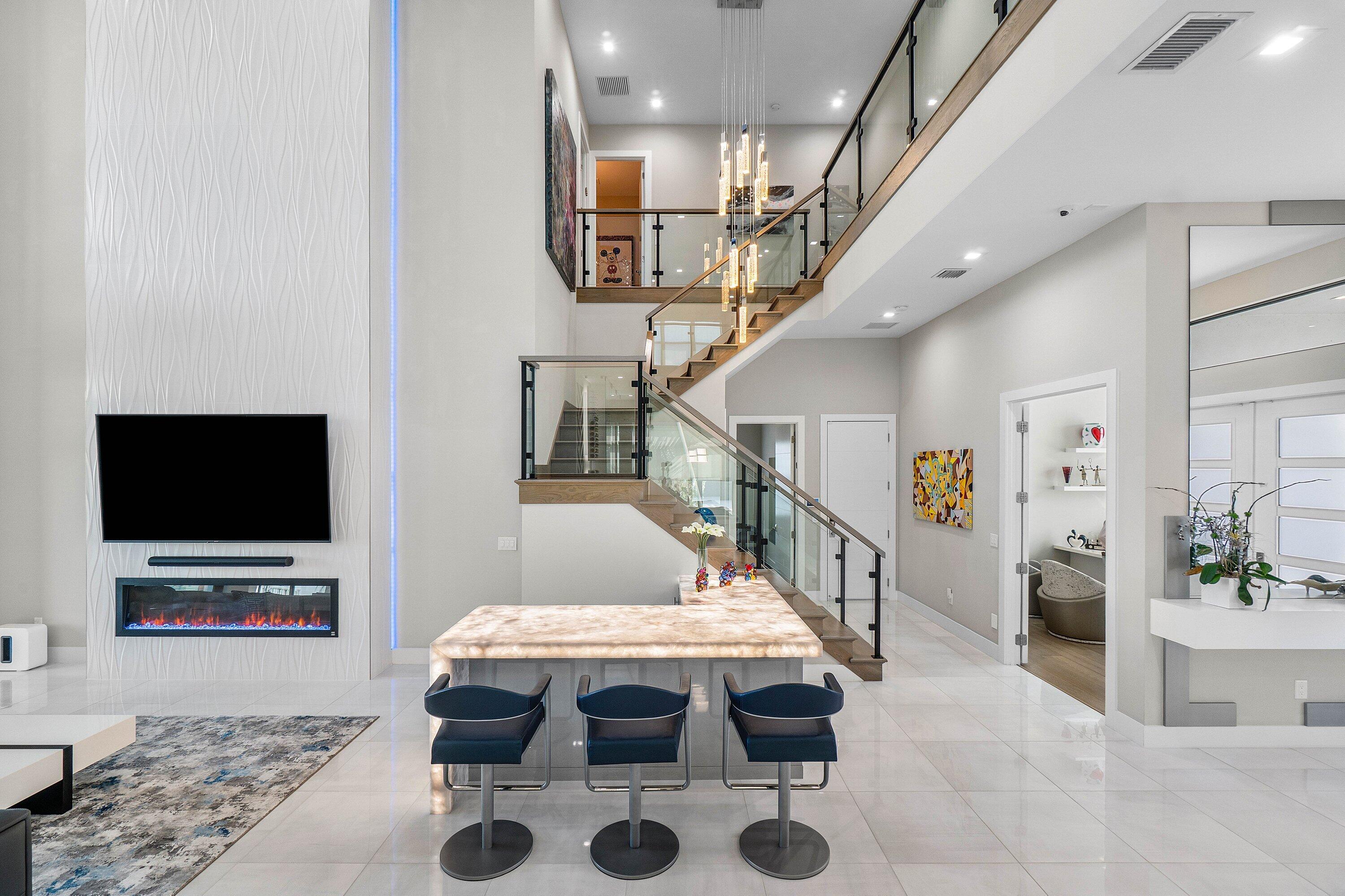Welcome to your new home where luxury meets technology. This Veneto contemporary model is offered fully furnished and is truly one of a kind; the largest model with a primary suite downstairs. This home sits on an oversized one-third acre lot (plus a drainage easement) overlooking the lake, only one block away from the clubhouse and all of the amenities that Boca Bridges has to offer. Roughly 6,000 square feet under air, this home offers 5 bedrooms, 7 bathrooms (5 full and 2 half), plus a 7 seat movie theatre with custom seating, 120'' laser projector, wet bar and full surround sound with hidden speakers. As if that's not enough, there is also a built in golf simulator with moveable hitting area and a flightscope launch monitor.