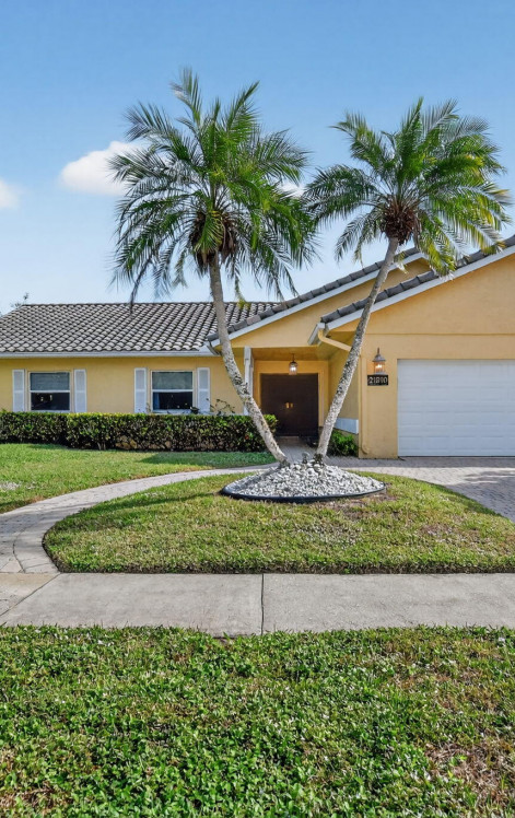 Entertainers' retreat in the sought-after, 24-hour manned-gated community of Escondido in the heart of Boca Raton. This exceptional 4-bedroom, 3.5-bath residence PLUS office/flex room offers a bright, open layout designed for seamless indoor-outdoor living. Expansive living areas feature vaulted ceilings with striking wood beams & flow effortlessly to a private pool with tranquil golf course views. The chef's kitchen includes a large center island with prep sink, premium JennAir stainless steel appliances, double ovens, induction cooktop, microwave drawer, beverage refrigerator, & ample storage. Impact windows, a two-car garage, Tesla charger, and generator transfer switch add peace of mind. Fully fenced yard with tropical fruit trees. Low HOA, A-rated schools, near shops, dining & more.