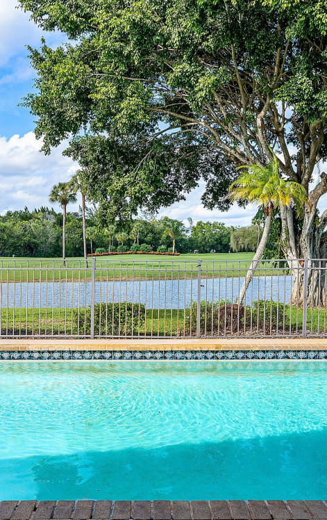 Nestled on a quiet cul-de-sac in the desirable Boca Woods Country Club, this unique (2 bedroom/3 bath + Family Room and Den) sits on an expanded pie-shaped lot. The split floor plan offers privacy, while the outdoor living space features an oversized pool and the most stunning water and golf views, creating a breathtaking setting from the pool area. Boca Woods is an all age Country Club Community which offers resort style amenities, including two championship golf courses, Har Tru tennis courts, pickleball courts, state of the art fitness center, spa, game room, fully renovated clubhouse with fine dining and much more! Mandatory Country Club membership required $120,000.