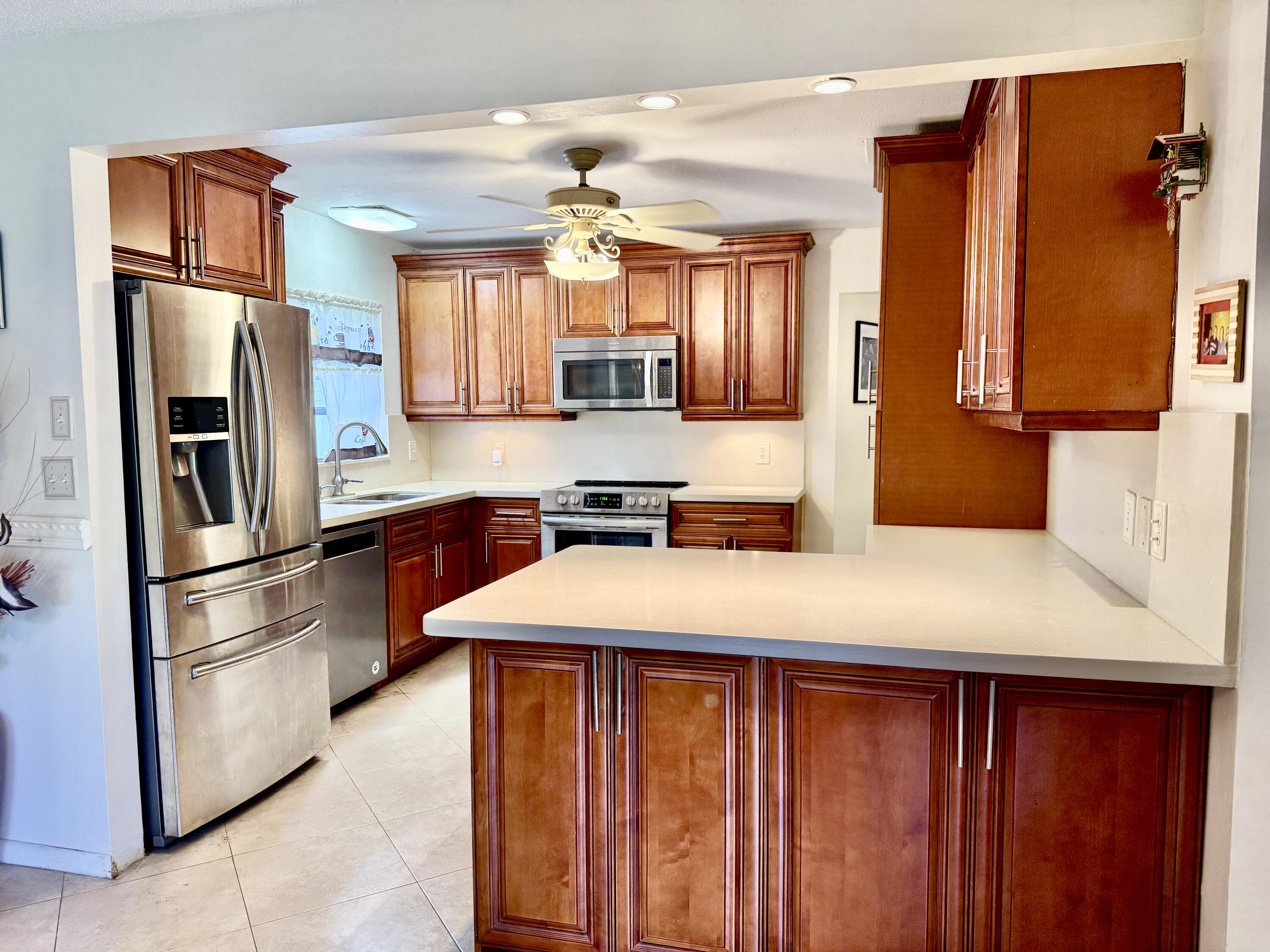 Beautiful and spacious 3 bedroom/2 bath single family home located in the sought after Greenbriar of Boca Chase, a 55 + community. The home boasts a newer 2022 roof, vaulted ceilings, tile floors throughout, and a Florida room with a stunning view. Luxury kitchen cabinets and quartz countertops. Large bedrooms. Low HOA maintenance fees. Sprinkler irregation system runs off of newly installed well. Great location just minutes from shopping, dining, beaches, parks, and golf courses and tennis courts. A must see!