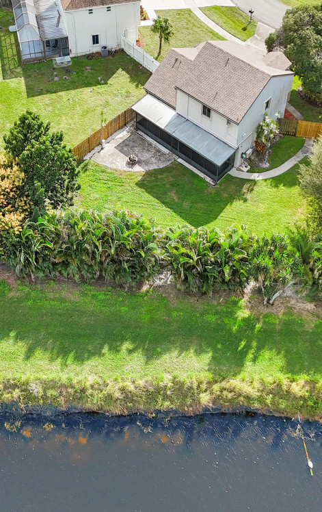 Bathed in natural light, this spacious and elegant two-story residence offers an open, airy layout designed for both refined living and effortless entertaining. The home currently features three bedrooms but can easily be restored to four. Two bedrooms were thoughtfully combined to create an expansive primary retreat; reinstalling the wall and reconfiguring the hallway door allows for a seamless return to a fourth bedroom if desired.Set on an oversized, private waterfront canal lot at the end of a quiet cul-de-sac, the property is surrounded by lush, mature landscaping and tranquil water views, creating a serene and secluded atmosphere.The grand living and dining areas showcase wood-look tile flooring and generous proportions, ideal for hosting on any scale. The designer