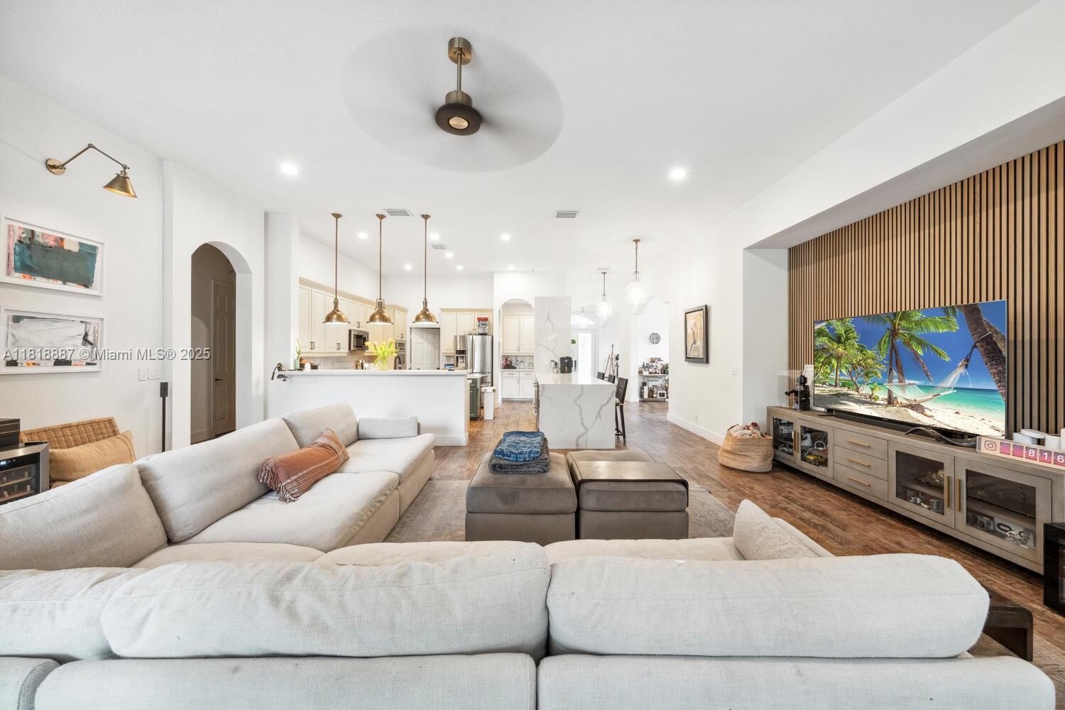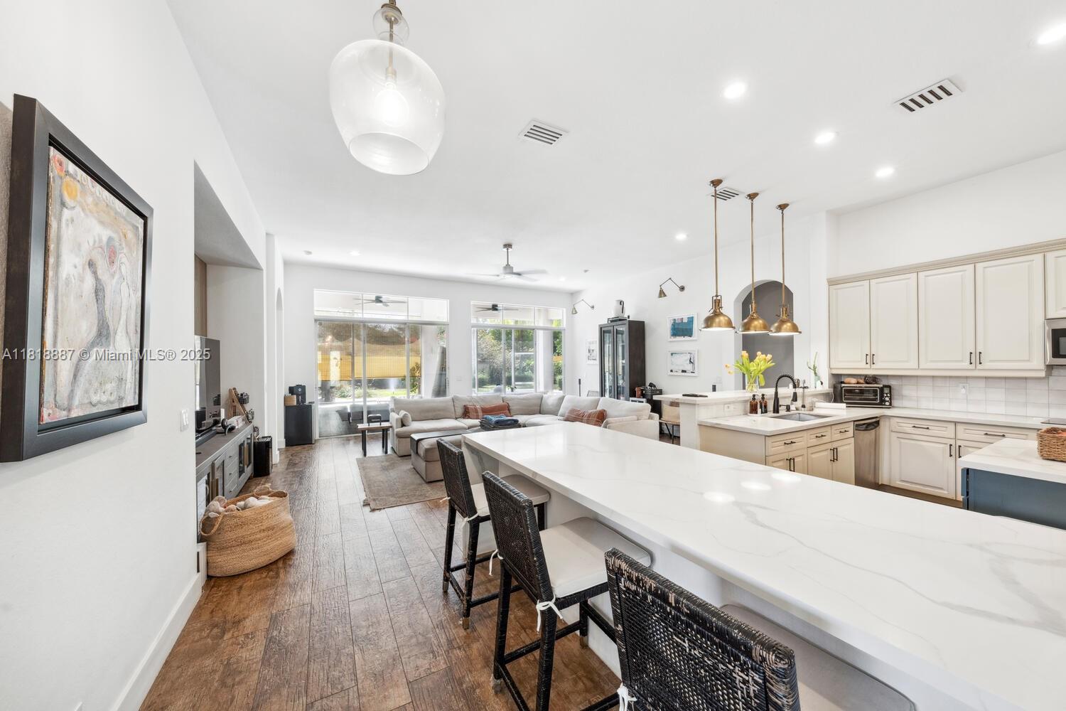 Luxury living in gated Hibbs Grove in Cooper City. This 4 bed, 3 bath pool home sits on an expansive 22,500_ SF lot (over 1/2 acre lot) with desirable triple split floor plan, 3 car garage, and spacious open concept layout. Featuring remodeled kitchen with quartz countertops and waterfall, upgraded tile flooring, modern LED lighting, and curated interior designed by Joanna D. Home includes screened patio, pool, custom tiki hut with outdoor kitchen and bar seating, built in grill, fridge, full electric and water. Close to top schools including Cooper City H.S. , Griffin Elementary, University School NSU, American Heritage, Archbishop McCarthy, and more.Lu