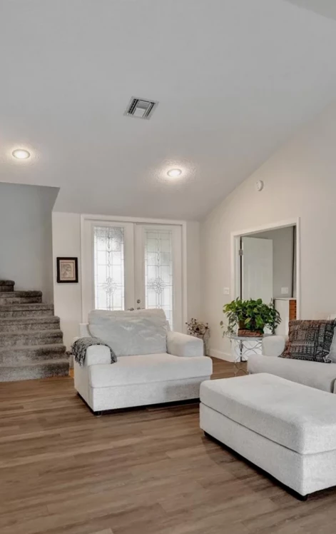 Welcome home to this Beautiful 4BR/3BA waterfront, pool home featuring a spacious 3-way split bedroom layout and full hurricane impact glass & doors throughout for safety and peace of mind. Sleek laminate flooring in all rooms.