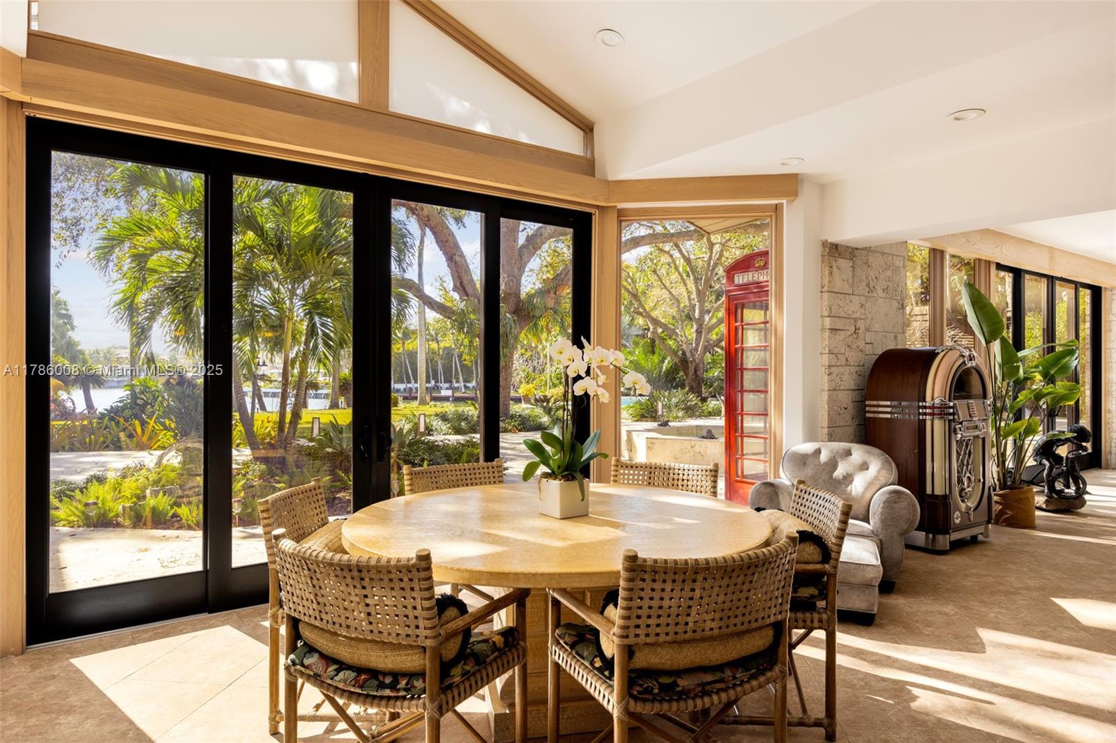 Experience the epitome of waterfront luxury with more than 2.25 acres in the highly coveted and exclusive Gables Estates enclave. On the market for the first time in over 35 years, this property offers the best of Miami living with unmatched privacy, views, and unobstructed access to Biscayne Bay and the Atlantic Ocean. With more than 10,800 square feet, the 7-bedroom home has generous living spaces all marked by unique design details: exposed beams, skylights, coral rock and more. The property's timeless tropical modern design is evident throughout, seamlessly blending the lush exterior landscaping into every room of the home. The backyard provides a private oasis with 130 feet of water frontage, a dock and boat lift. This is a rare opportunity for the most discerning homeowner!