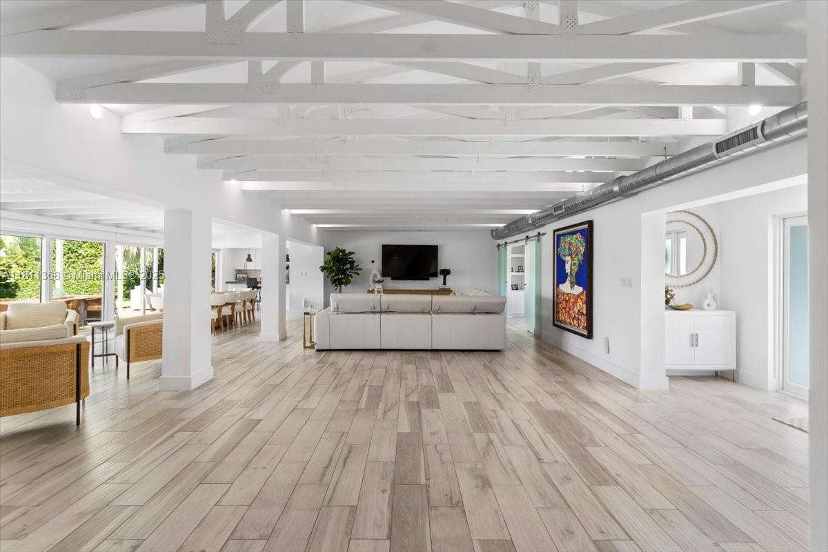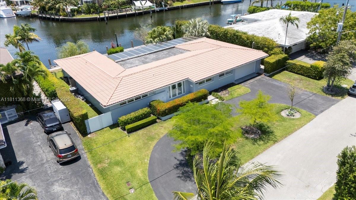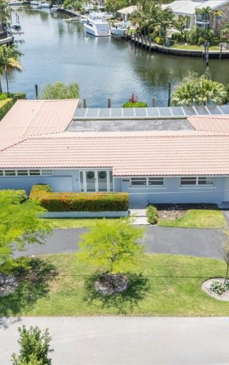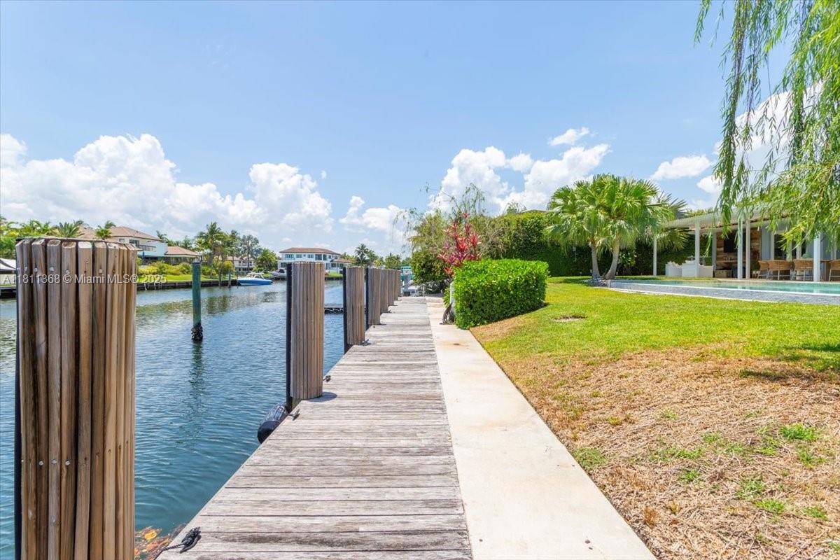 Dream waterfront home in Gables by the Sea, nestled within a secure, guard-gated community. This prime lot is perfectly situated on a wide T-style section of the waterway, offering direct ocean access with no bridges to the bay. With an impressive 100 feet of water frontage this home is perfect for outdoor living. Open floor plan is designed for entertaining and family gatherings, featuring high, open beam ceilings that frame breathtaking views from the kitchen, living room, dining area, family room, and master suite. The spacious master suite boasts a beautifully remodeled bathroom and stunning views of the pool. This home includes three bedrooms with four full bathrooms and a den/office, providing plenty of space for work and relaxation.