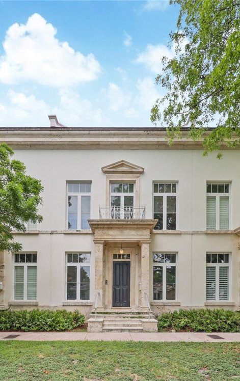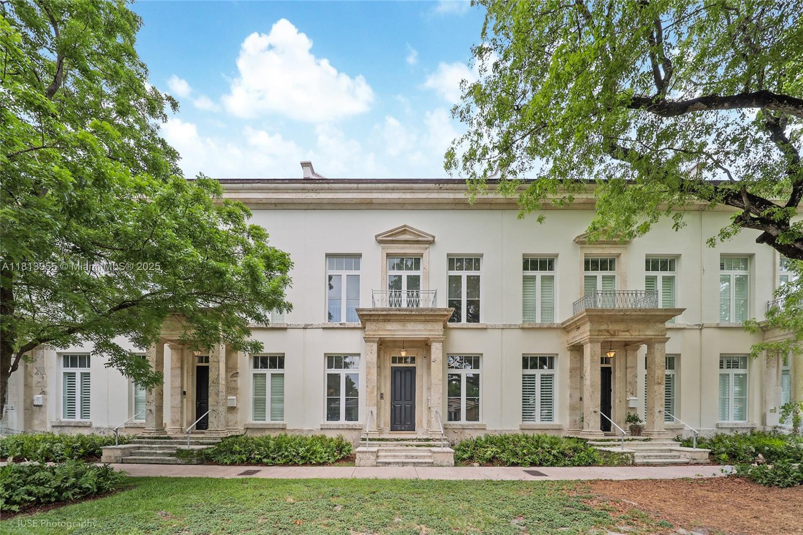 Meticulously redone in 2019, indulge in luxury at the architecturally awarded Almeria ROW ONE, designed by renowned Maria de la Guardia, distinguished by the Row House stone-clad exterior and sky-lit curving staircase, built by Venny Torre, known for excellence. 2019 curated finishes, renovated kitchen w/Sub Zero/Viking appliances, electric blinds, new AV, elevator, and solar panels. Natural light floods the upstairs landing, opening to the primary and Jr. suites, renovated bathrooms, walk-ins. Double doors and a wall of floor to ceiling windows off the kitchen and family room open to the private courtyard retreat with a European pool. Two en-suites, above the detached oversized garage, add to the flexible floor plan. Impeccable, sophisticated, this residence defines upscale urban living.