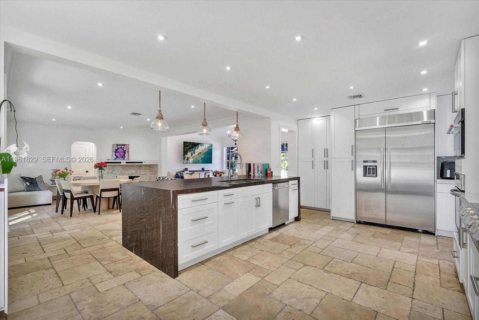 Set in one of Coral Gables’ most coveted neighborhoods, this 3,140 total sq ft private residential retreat is just a short stroll to Sunset Place’s shops, restaurants, and entertainment, as well as top-rated schools. Enjoy the rare convenience of being able to leave the car at home while still returning to complete privacy. The property features a four-bedroom, three-bath main residence complemented by a separate one-bedroom, one-bath guest house—ideal for visitors, extended family, or flexible workspace. Generous living and dining areas centered around a cozy fireplace are filled with natural light and flow seamlessly into a gourmet kitchen with an expansive waterfall island designed for gathering and everyday comfort. What truly distinguishes this home is its remarkable sense of privacy. Mature tropical landscaping envelops the lush lot, creating a serene, sheltered environment rarely found steps away from premier dining and shopping. The main house and guest house are thoughtfully positioned around a sparkling pool and courtyard, enhancing the estate-like feel while maximizing indoor-outdoor living. A rare opportunity to own a spacious, private sanctuary in the heart of Coral Gables.