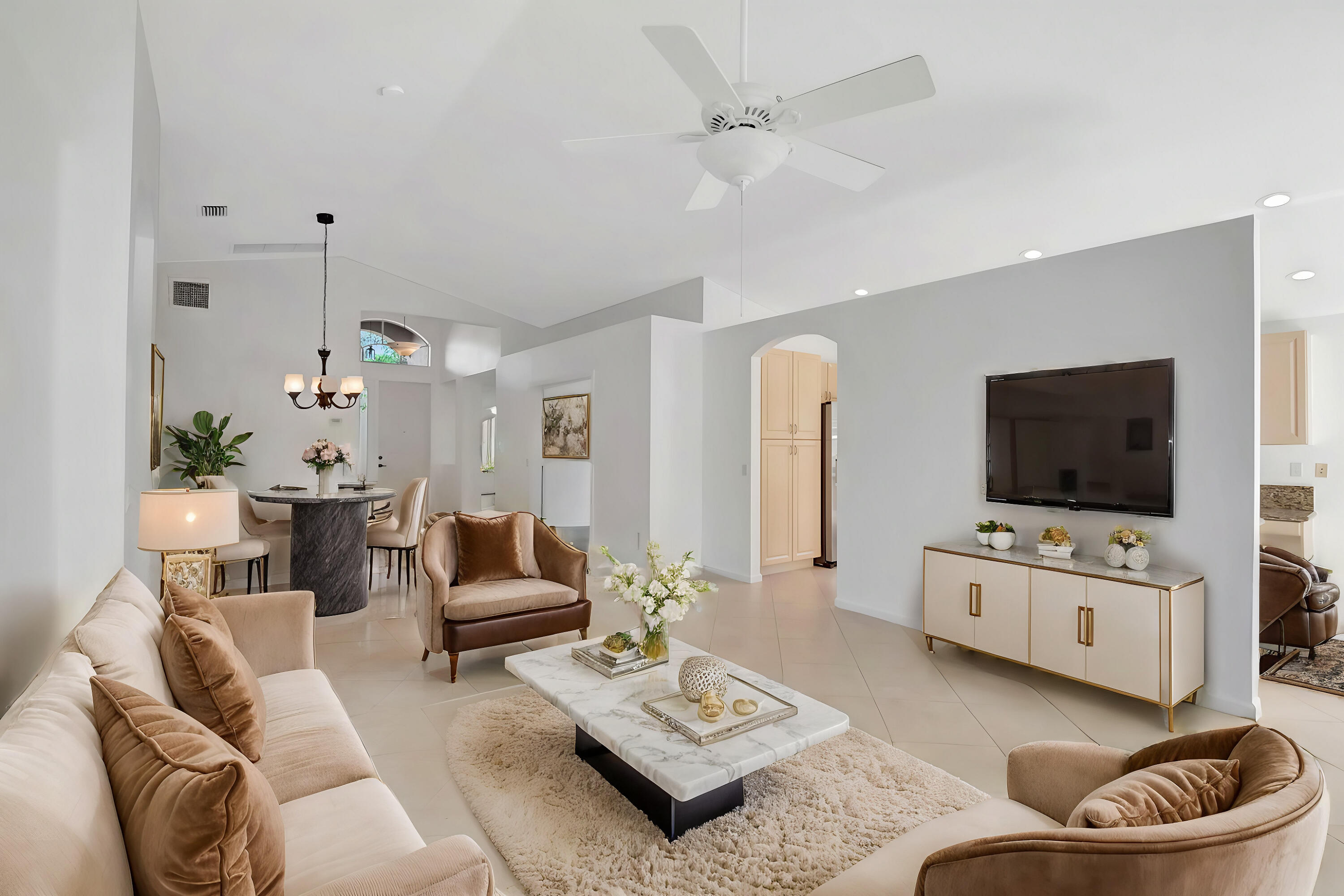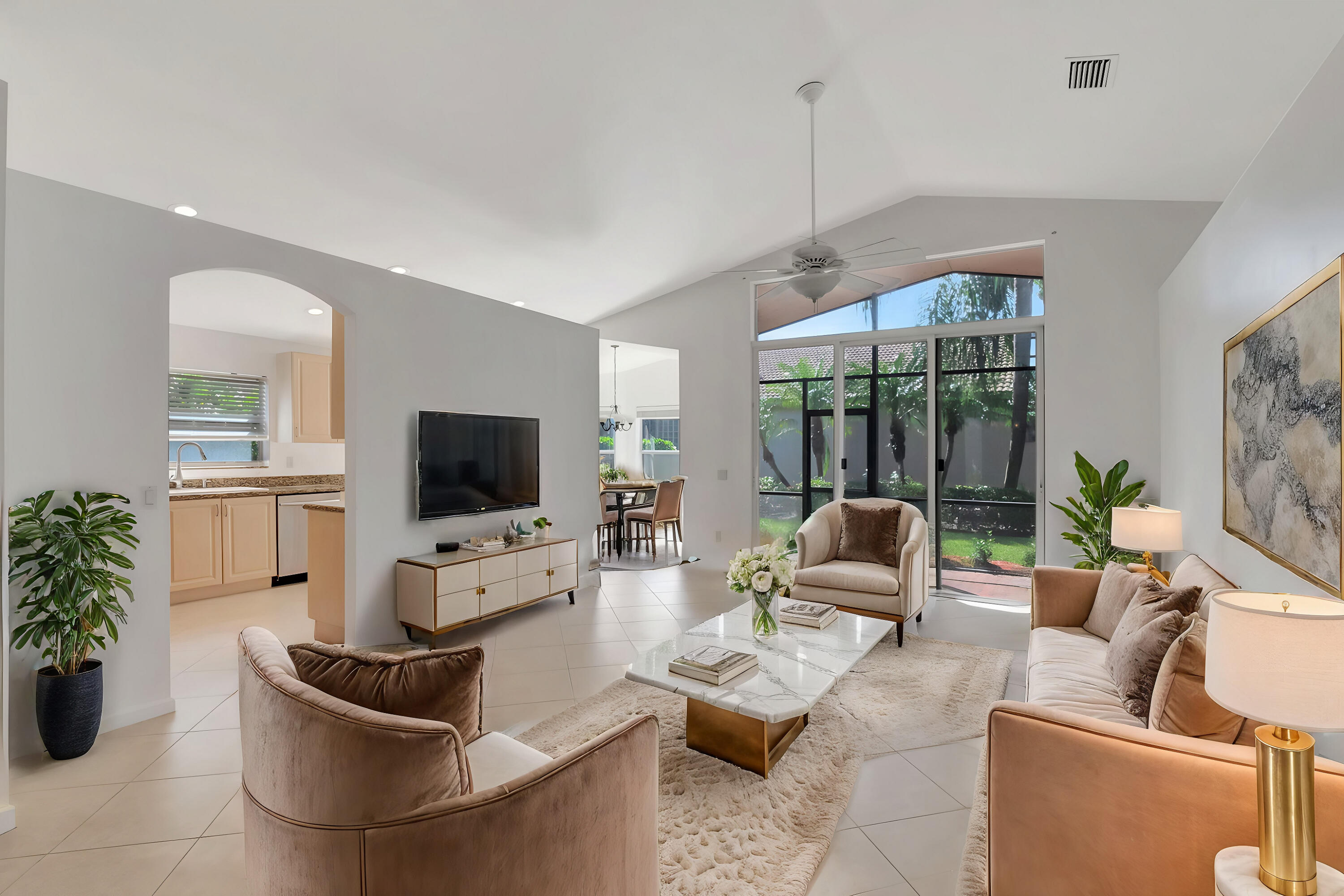 PRICE REDUCTION! LIVE THE VALENCIA PALMS LIFESTYLE. THIS CHARMING 3 BEDROOM, 2 BATHROOM SOUTH PACIFIC MODEL IS READY FOR YOUR PERSONAL TOUCH. This home features an Open Concept Living area with abundant natural light, offering a warm and inviting entertaining space. The functional Kitchen equipped with plenty of cabinet space is ready to become the heart of your home. Beautiful screened lanai overlooking lush garden for you to relax with your morning coffee or afternoon wine. Gorgeous Clubhouse, Fitness Center, Resort Pools, Lap Pool, Resistance Pool, Billiard Room, Cafe', Social Events, Clubs, Shows, Grand Ball Rm. Pickleball, Tennis. Bocce Ball. Maintenance fee includes cafe card, Cable with all channels, internet, landline, ext. house painting, alarm. lawn and tree care.